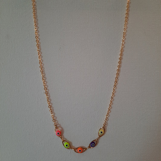Collier stainless steel chaîne perles evil eye, œil de Turquie, réglable ajustable