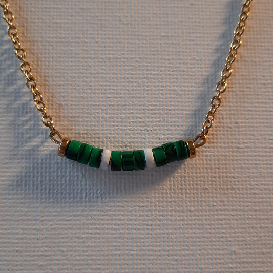 Collier stainless steel et perles en email coloré vert handemade sur mesure