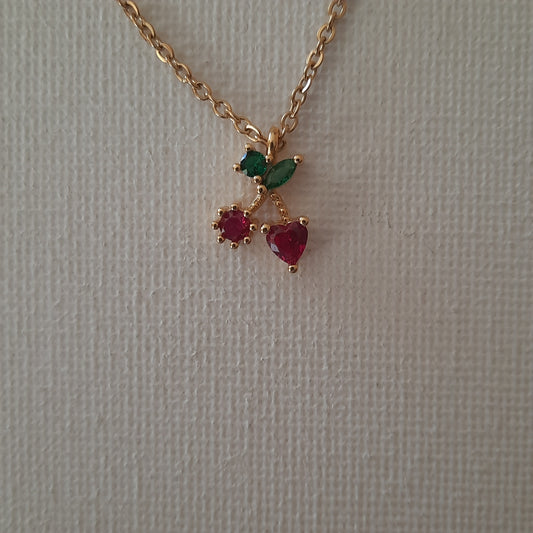 Collier stainless steel 316 pendentif cerise fushia cristal et acier inoxydable