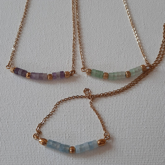 Collier stainless steel 316 et perles heishi Améthyste, Aigue marine, Amazonite