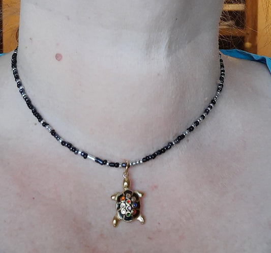 Collier stainless steel et perles en email coloré handmade/sur mesure