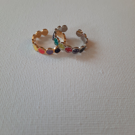 Bague acier inoxydable stainless steel 316 et email coloré rouge réglable ajustable