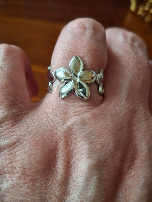 Bague grande fleur acier inoxydable stainless steel 316 réglable ajustable