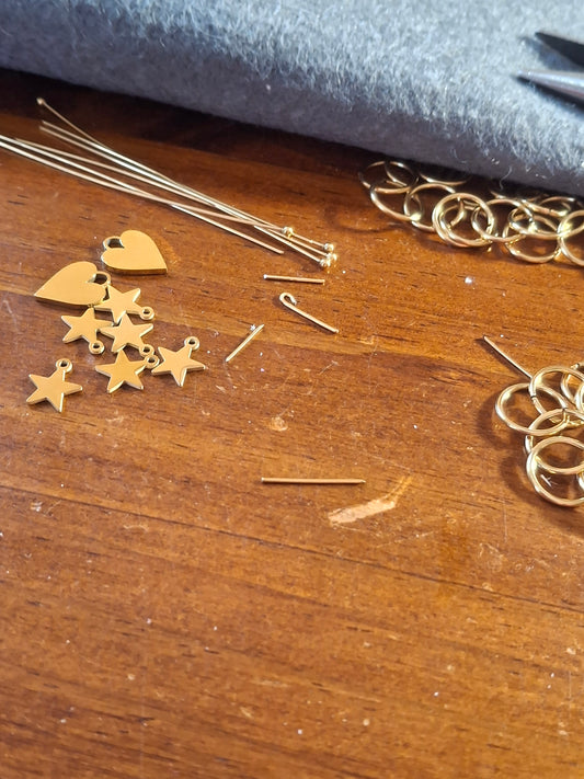 Bracelet double rang chaîne dorée acier inoxydable stainless steel motif fleurs et cœurs uniquement sur mesure