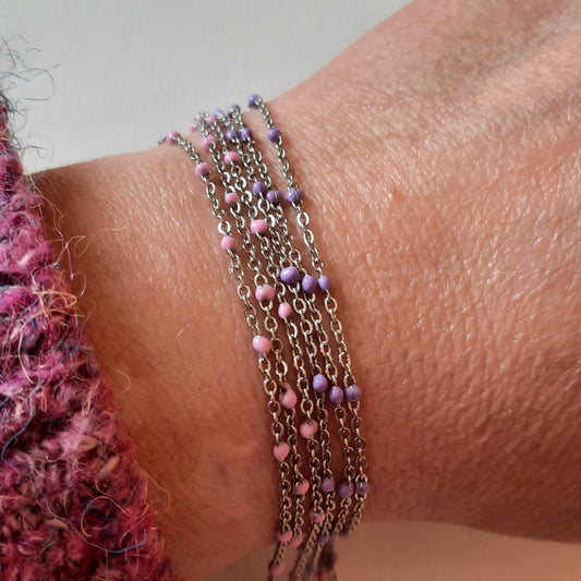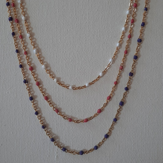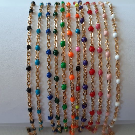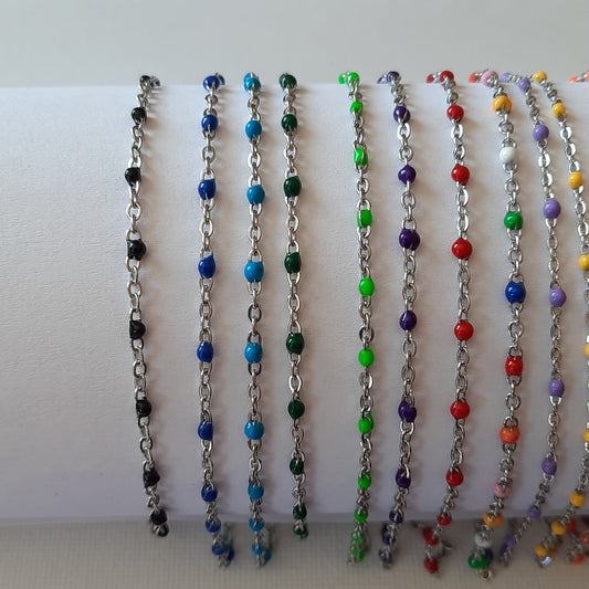 Set aus 3 Edelstahlketten, Edelstahlkette und individuell gefärbten Emailleperlen
