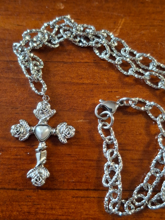 Sehr schöne Halskette aus Edelstahl 316, polierter Anhänger in Kreuzform aus Edelstahl 316.