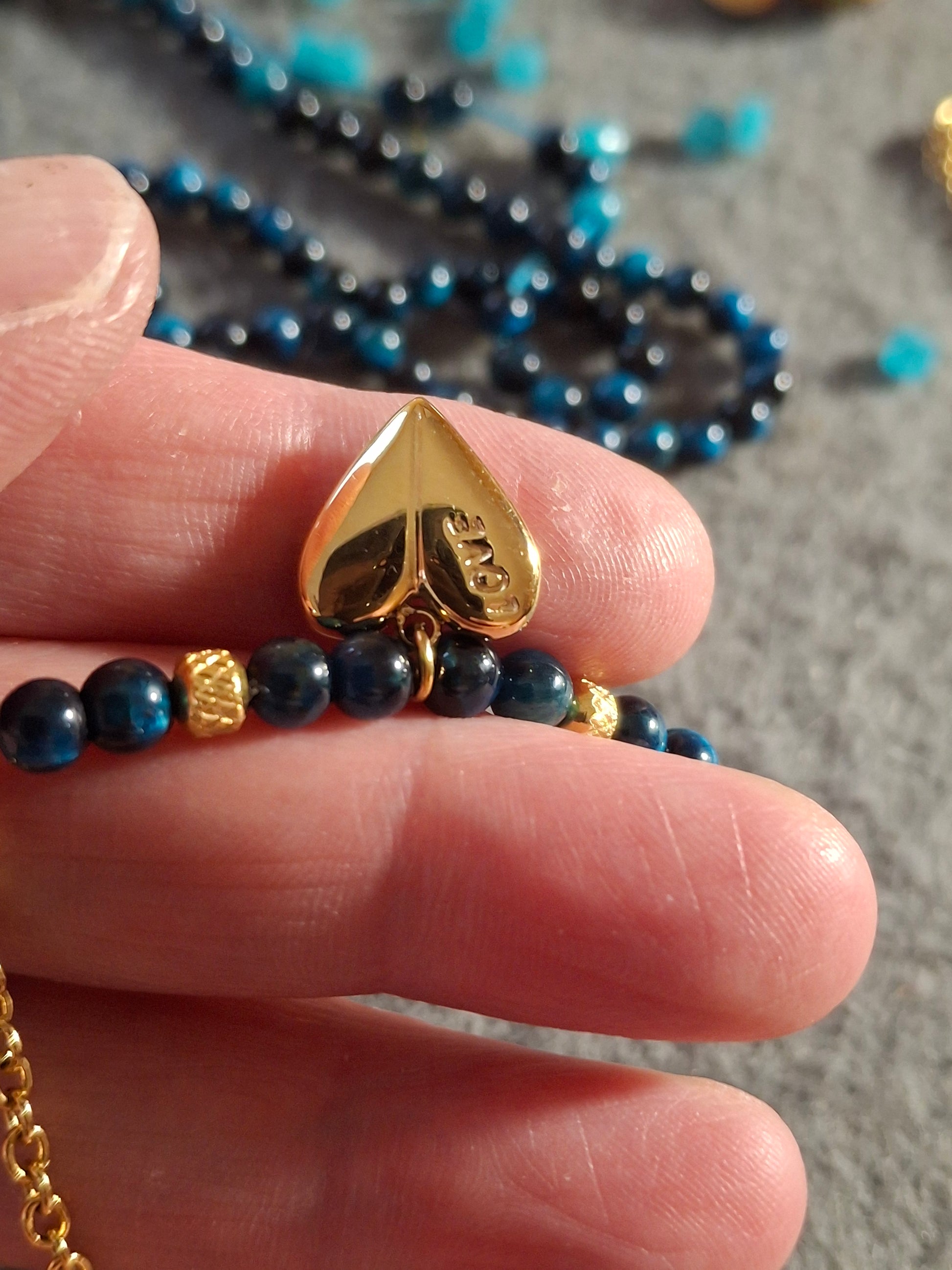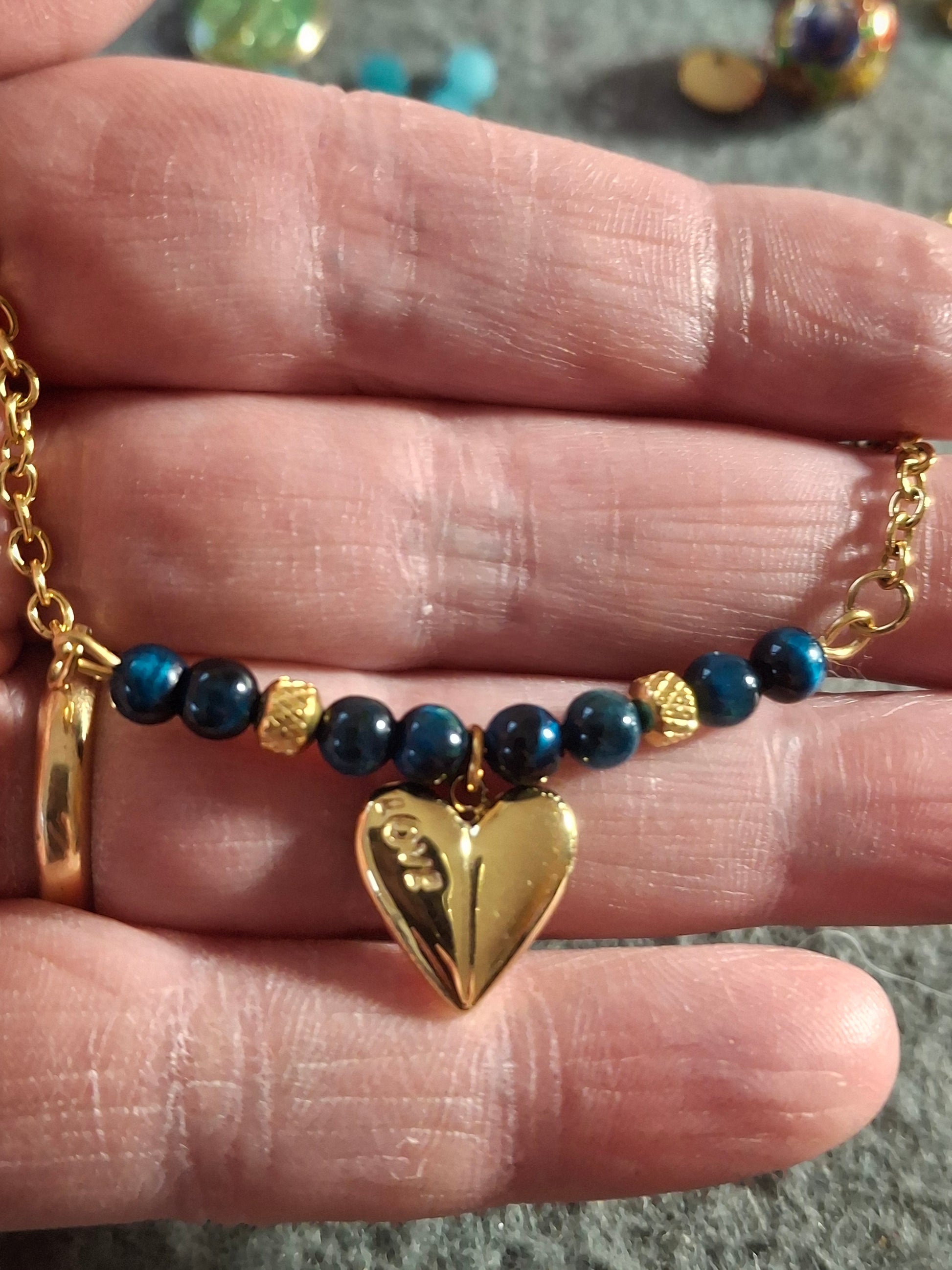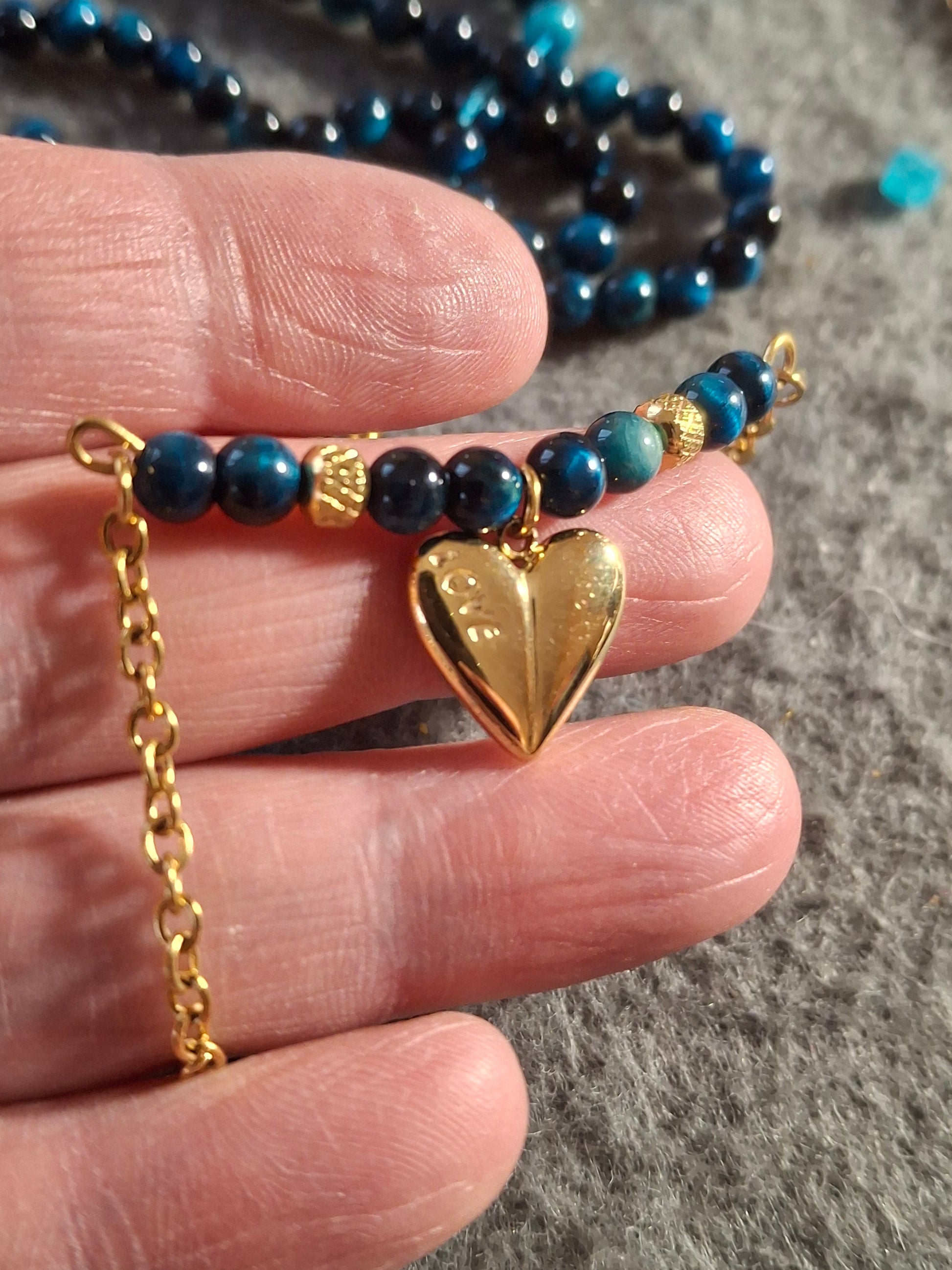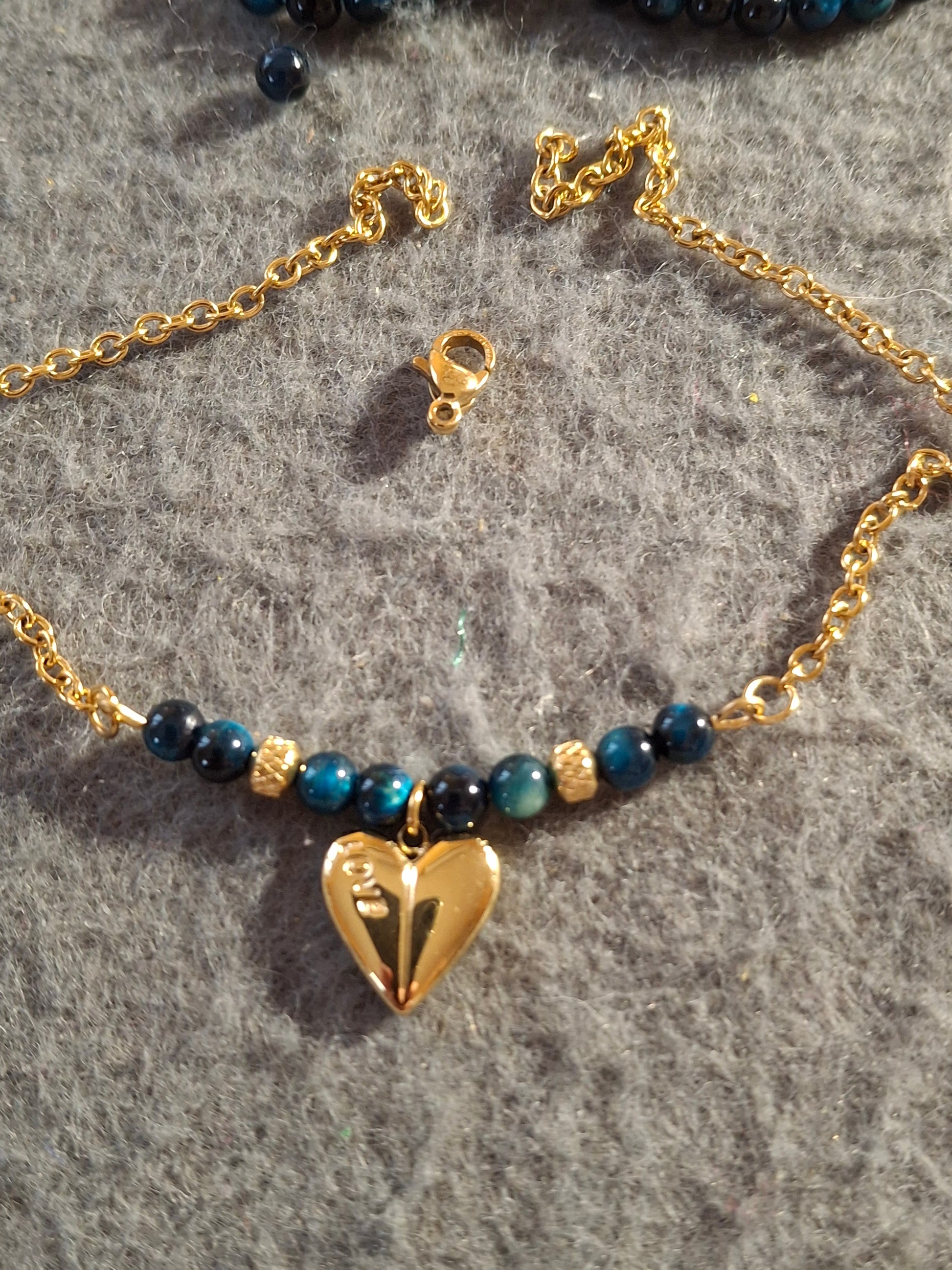 Bracelet chaîne acier inoxydable stainless steel 316 ,perles œil du tigre bleu handmade sur mesure
