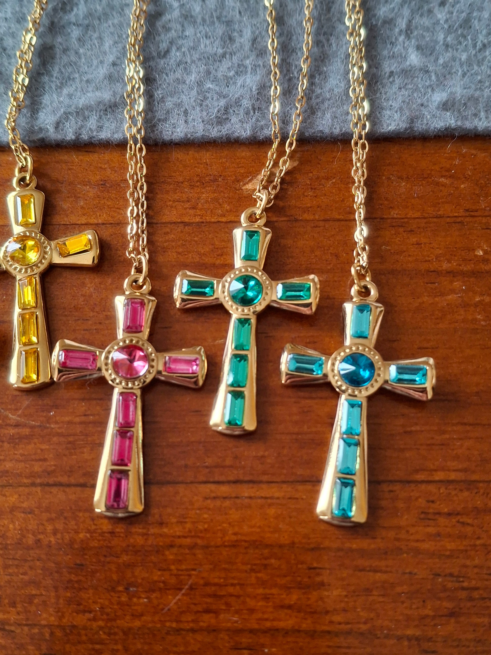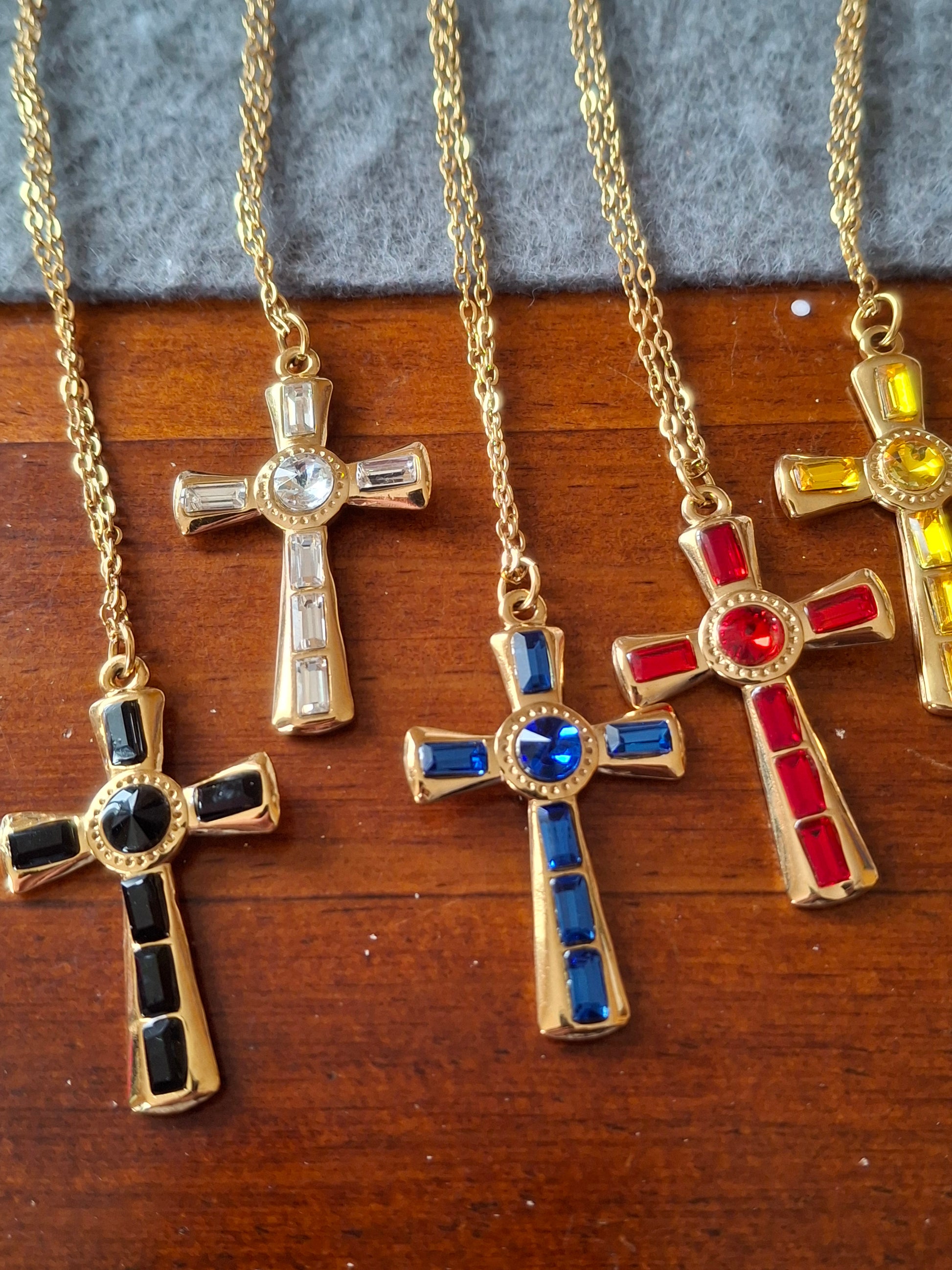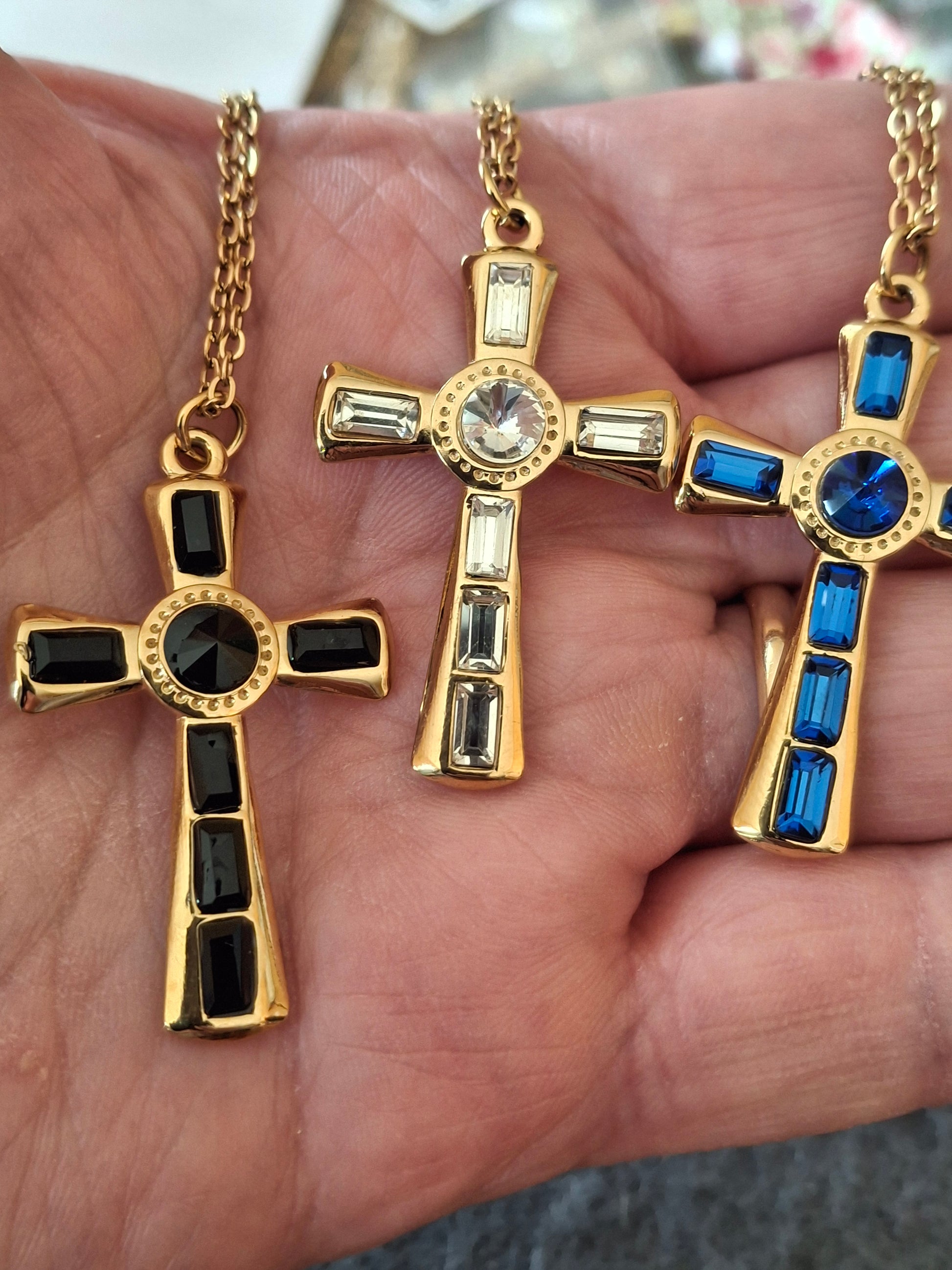 Halskette aus vergoldetem Edelstahl 316, Kreuzanhänger aus Edelstahl und 18-karätig vergoldeten Strasssteinen
