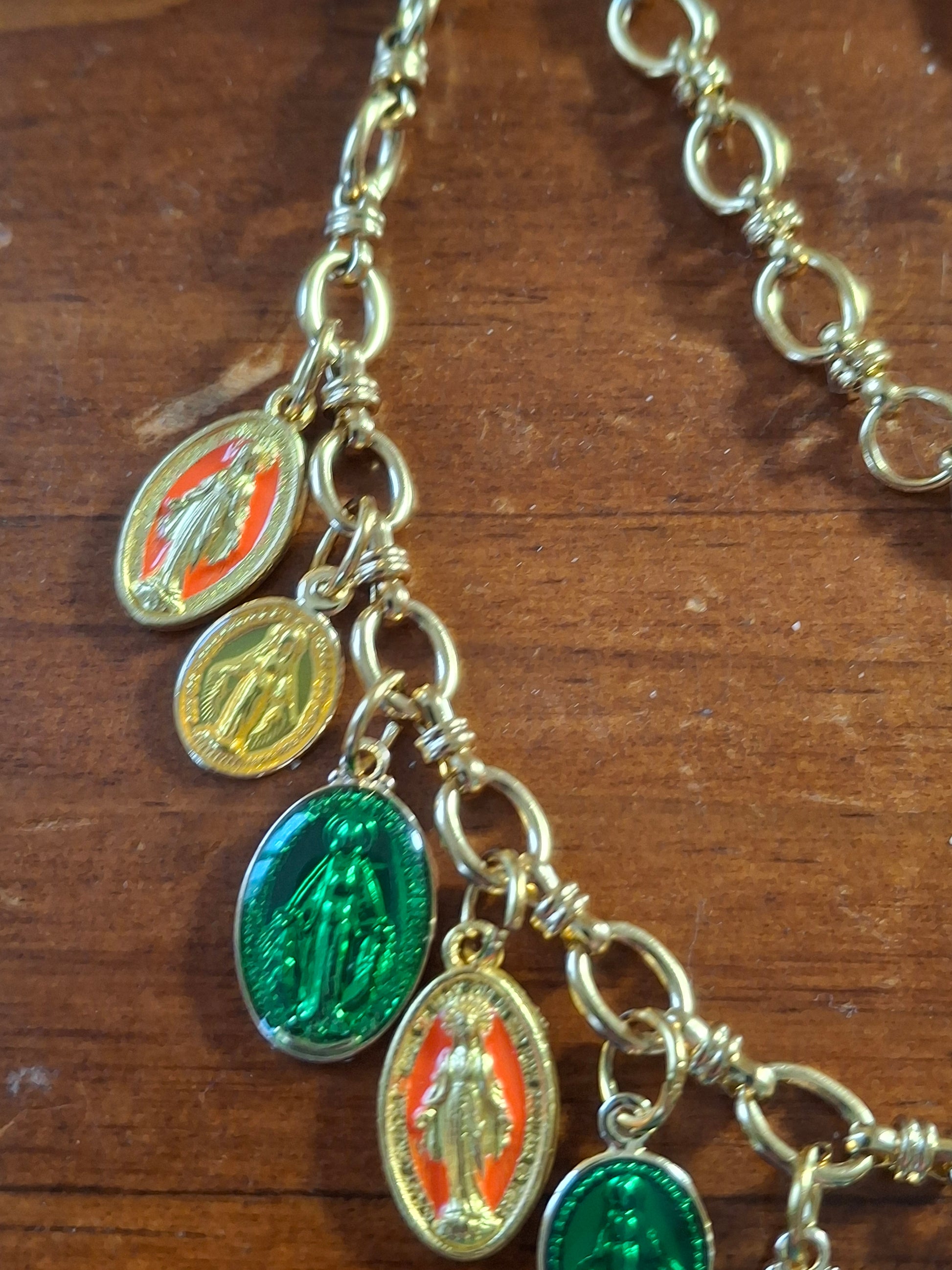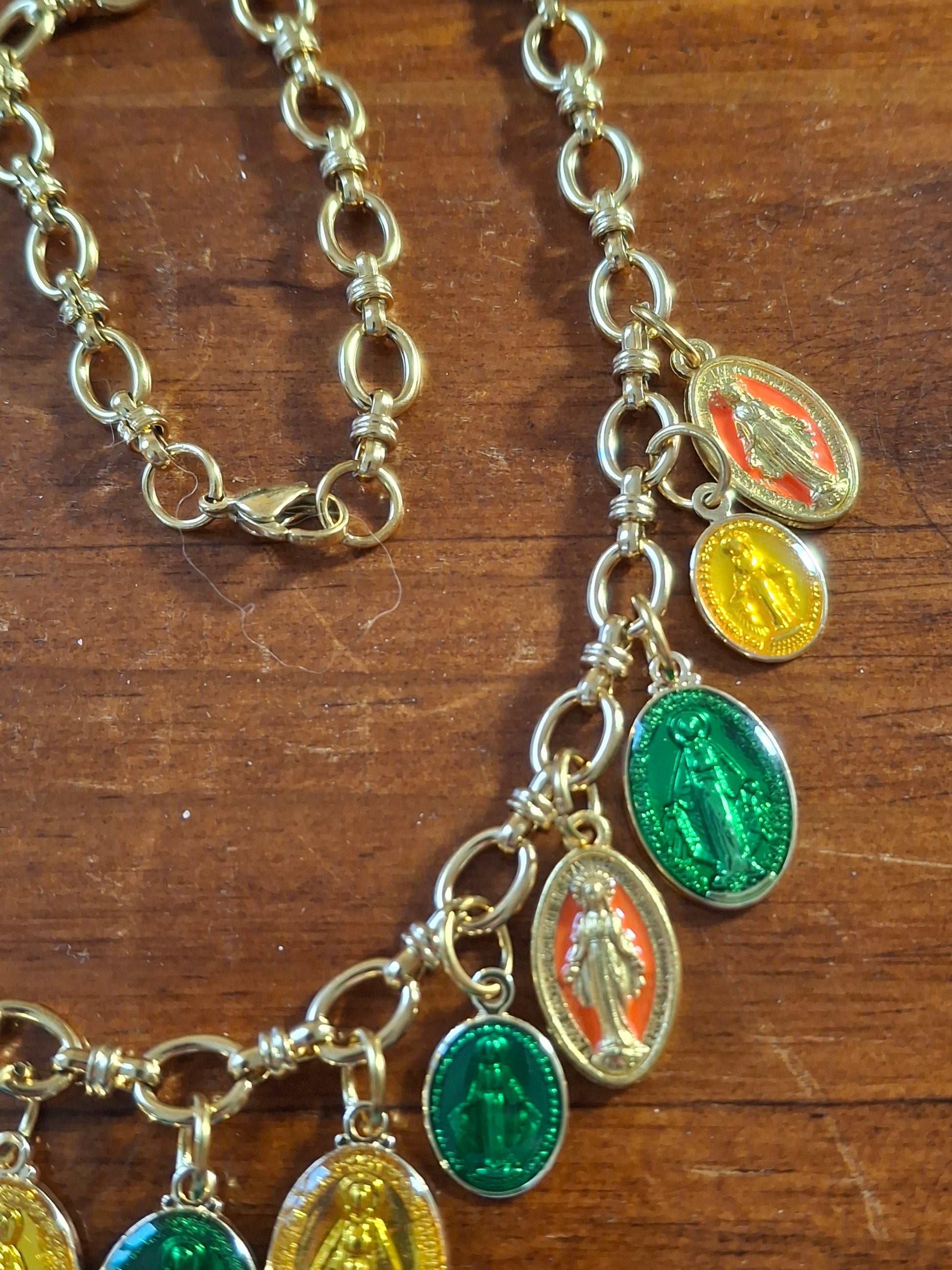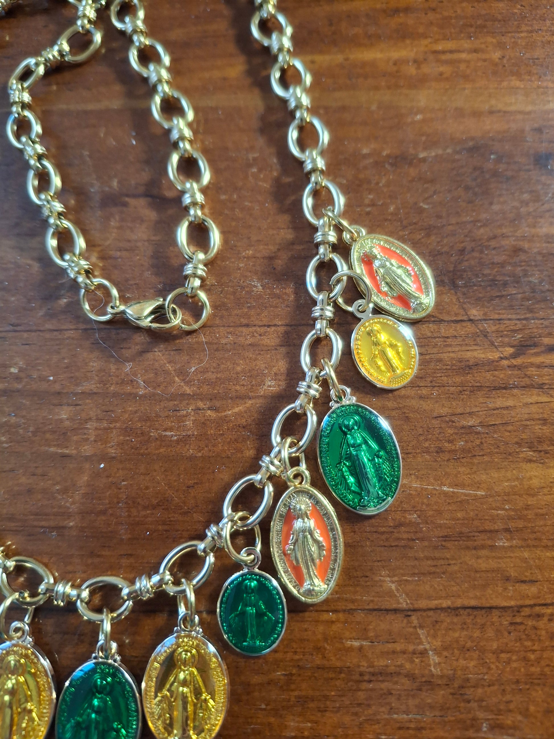 Collier chaîne maille gourmette stainless steel 316 et breloques madone handmade réglable