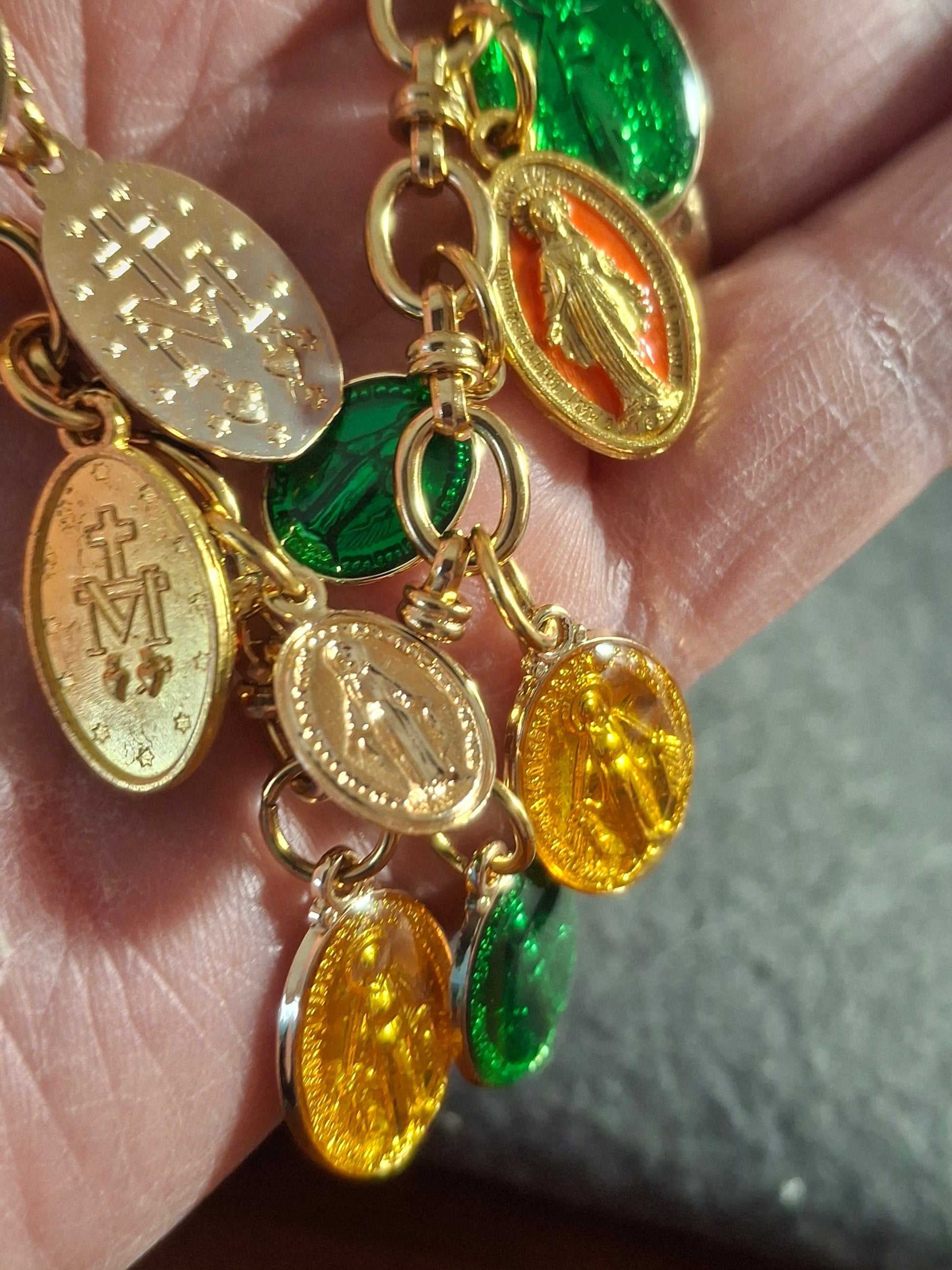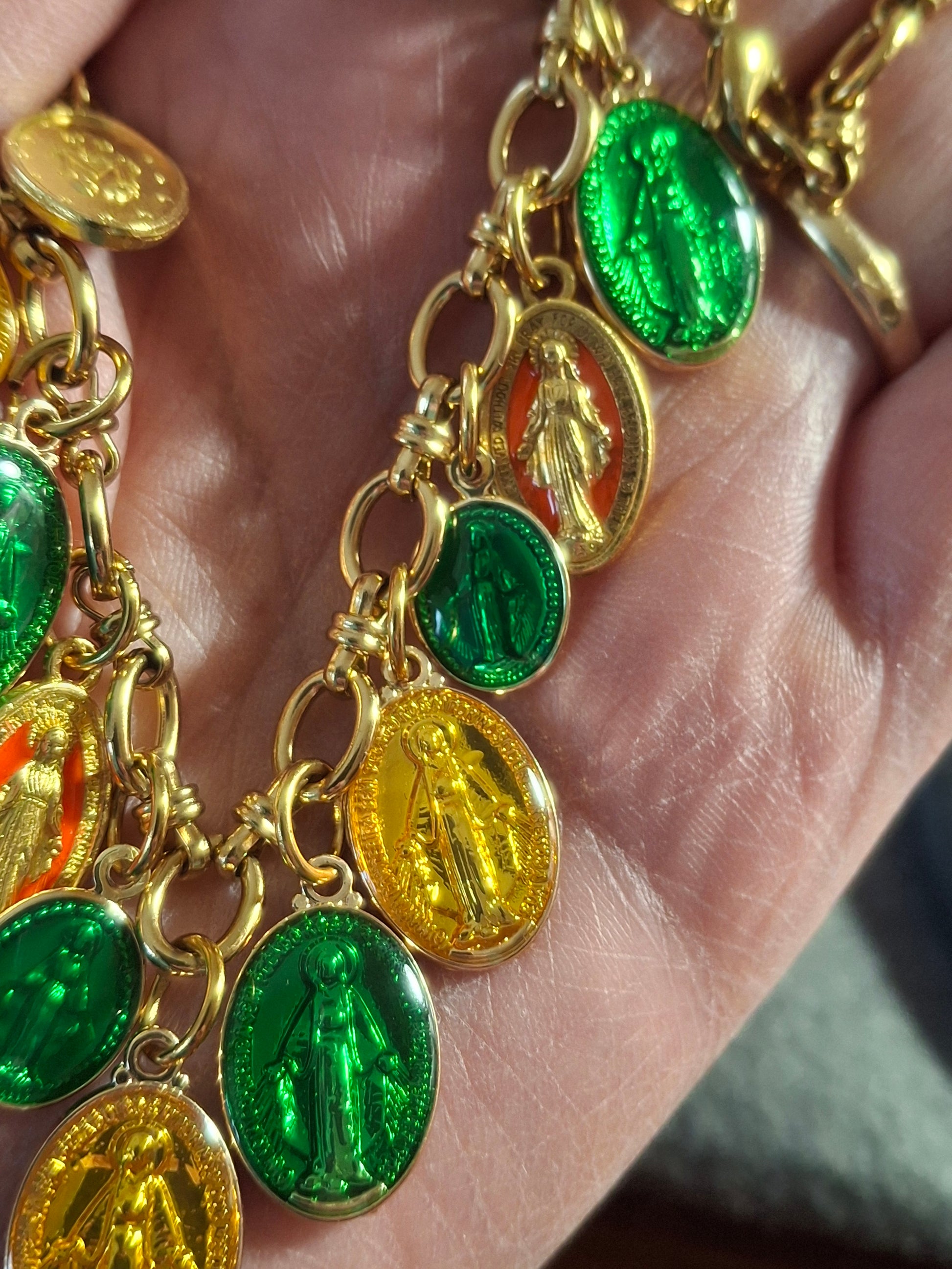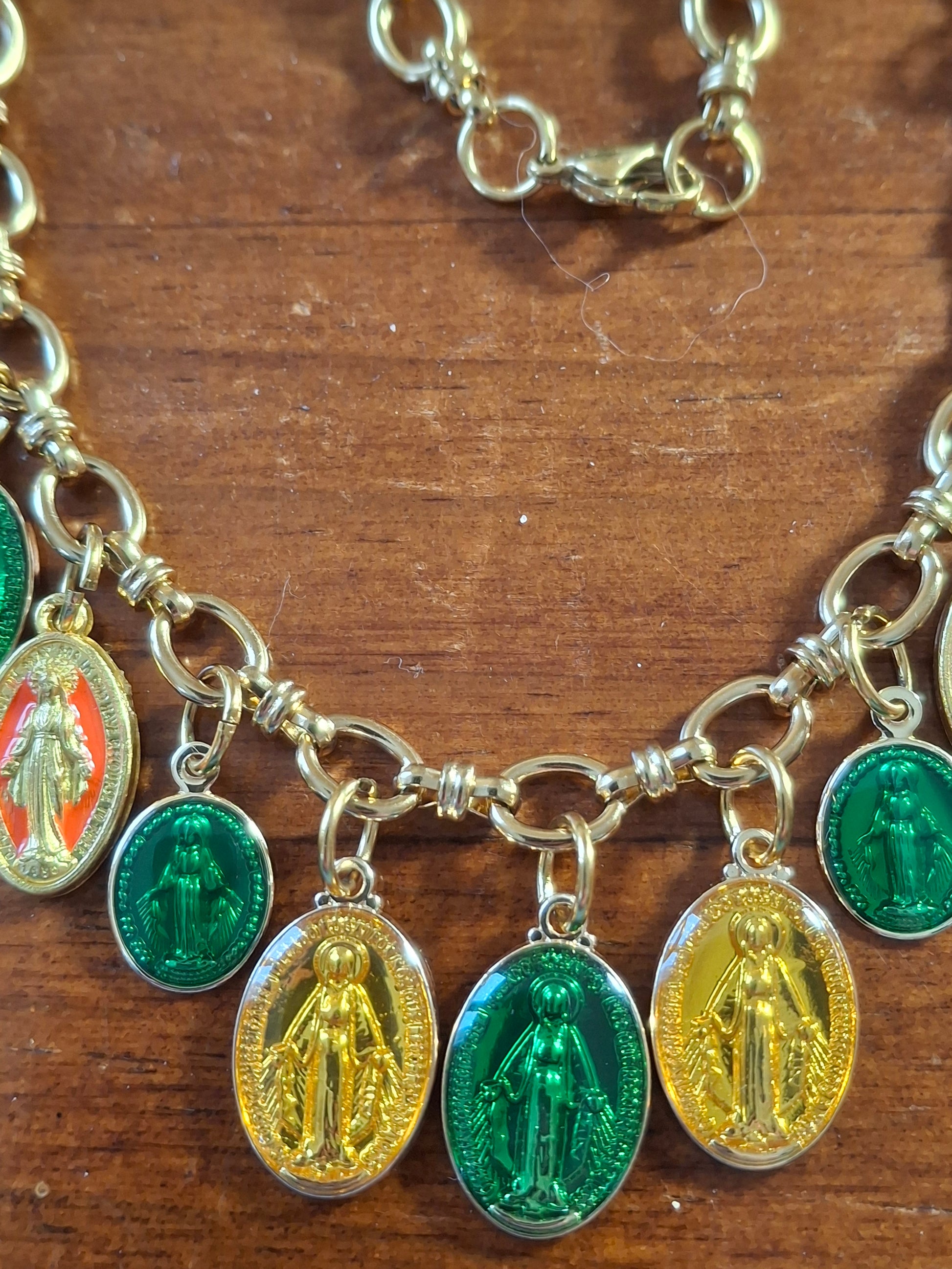 Collier chaîne maille gourmette stainless steel 316 et breloques madone handmade réglable