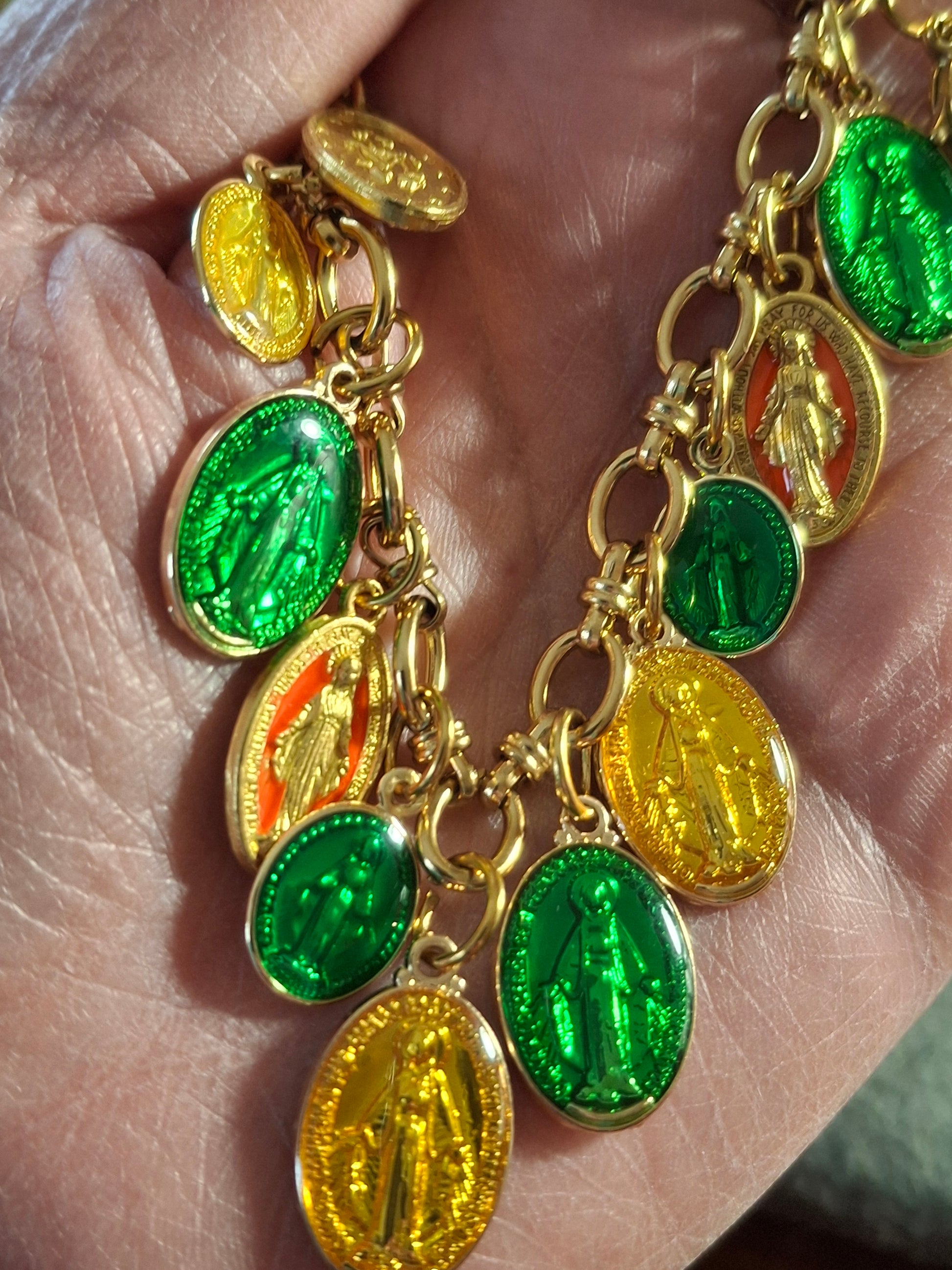 médailles madone en laiton et email dorées à l or fin