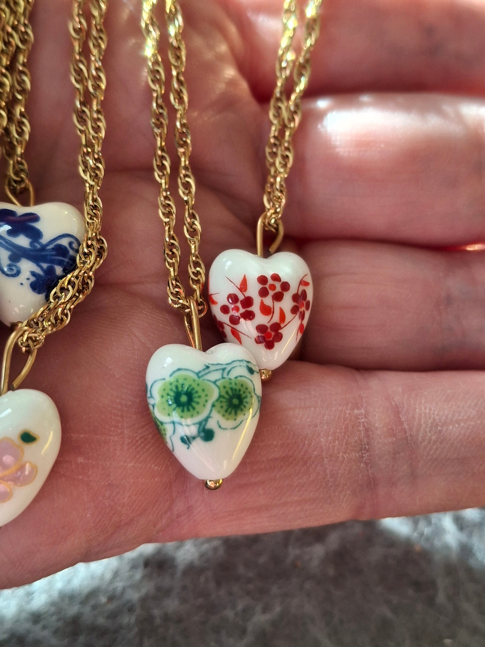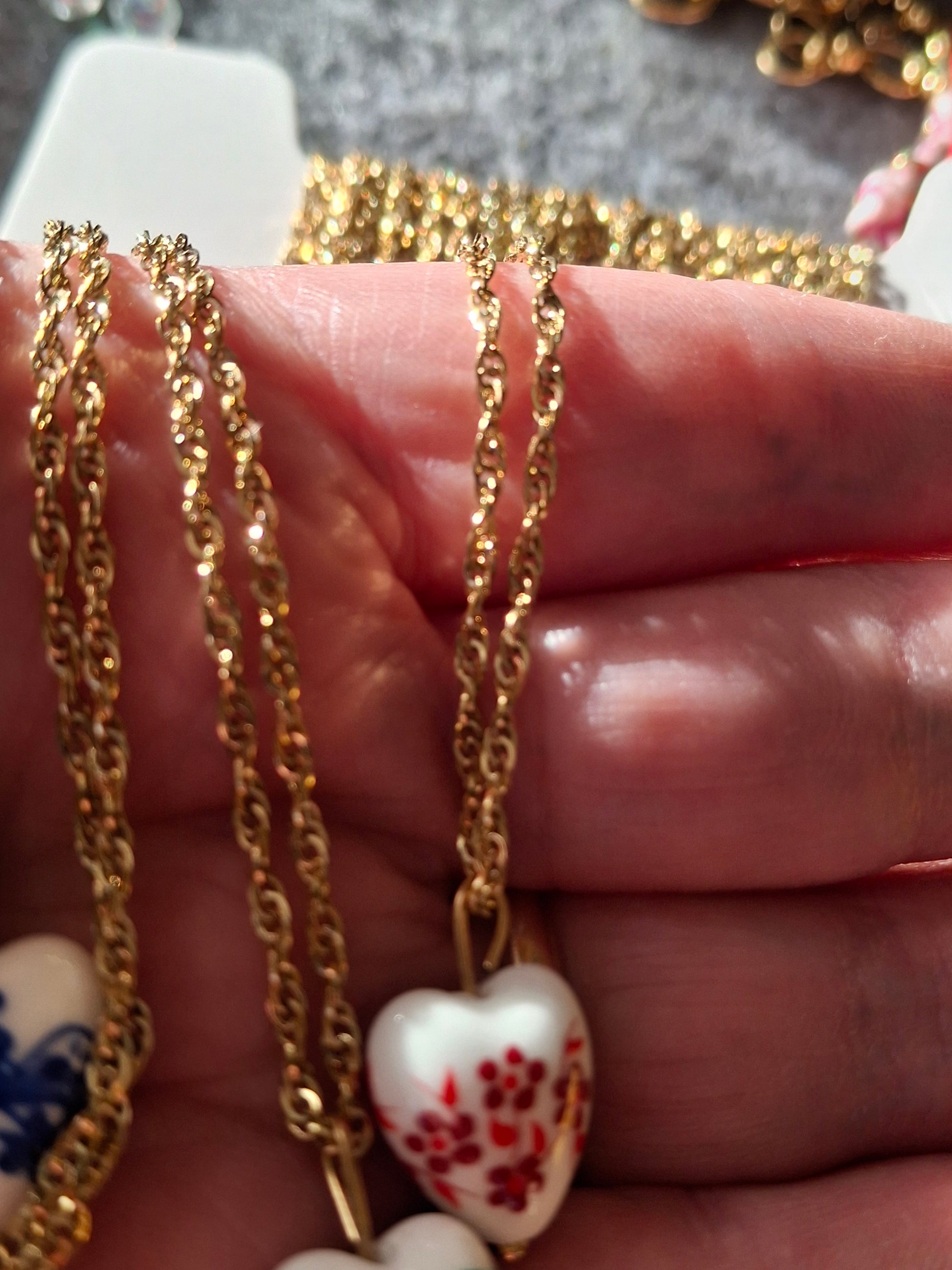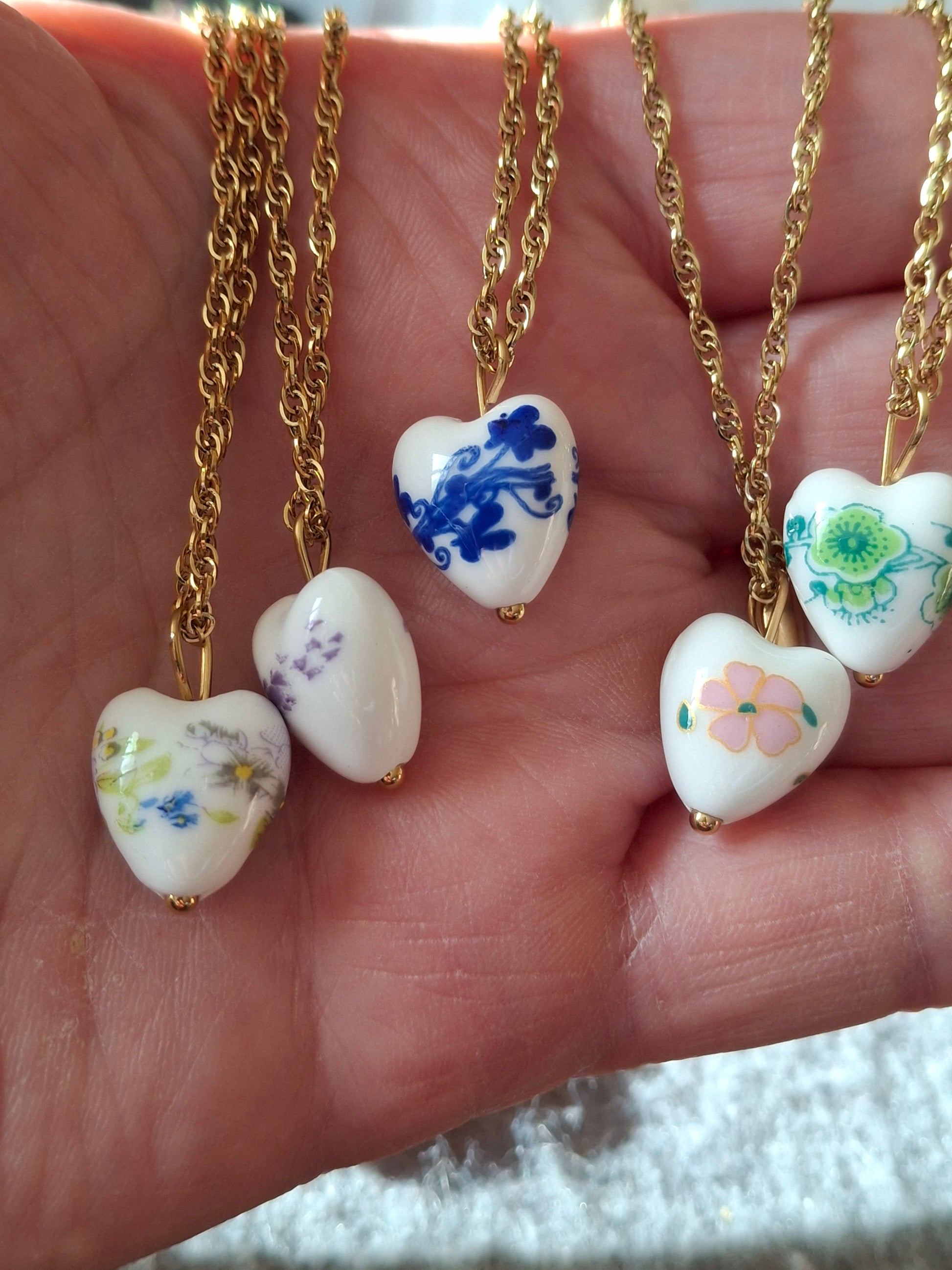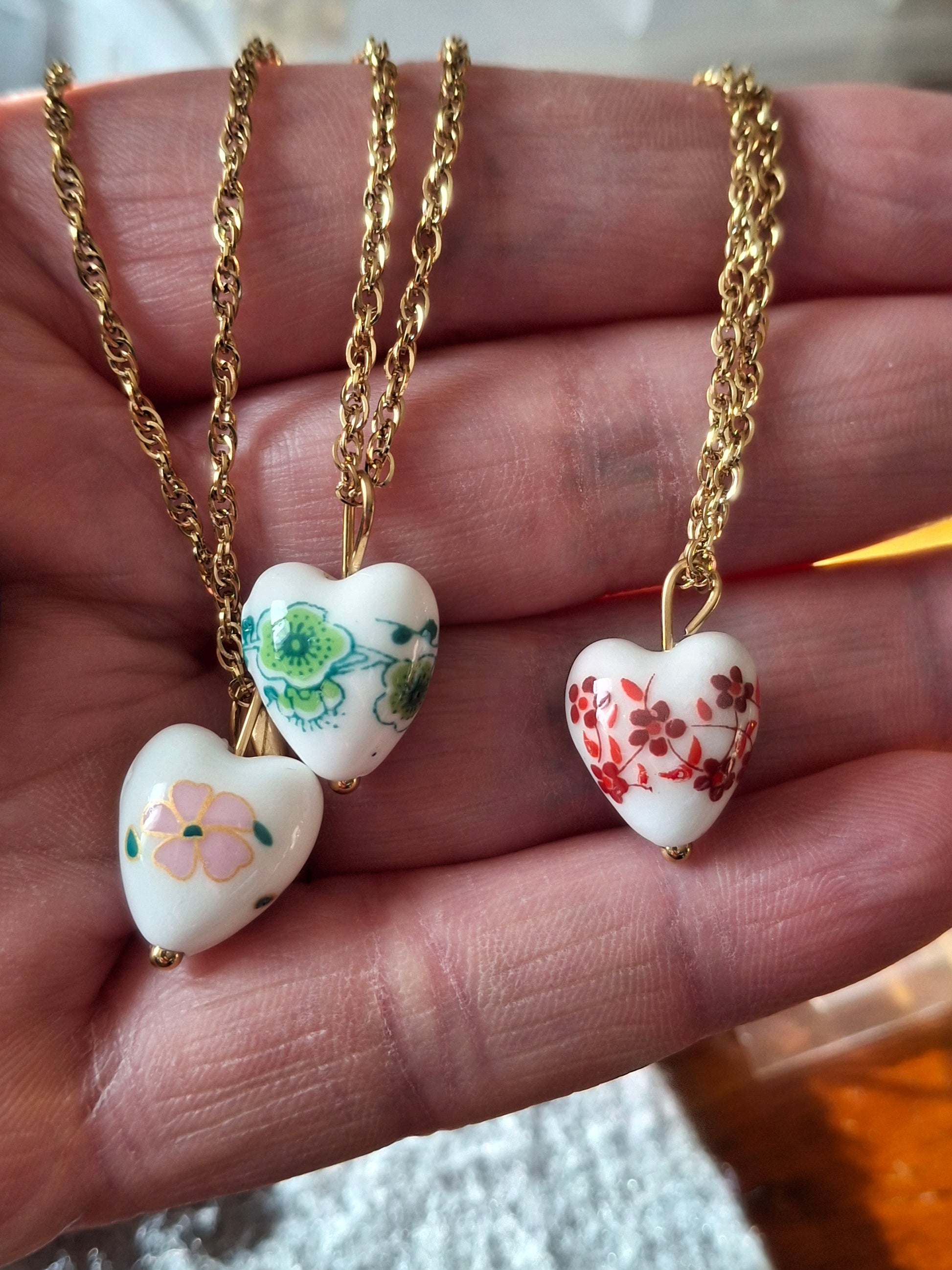 Halskette aus gedrehter Edelstahlkette (316) mit Porzellanherz