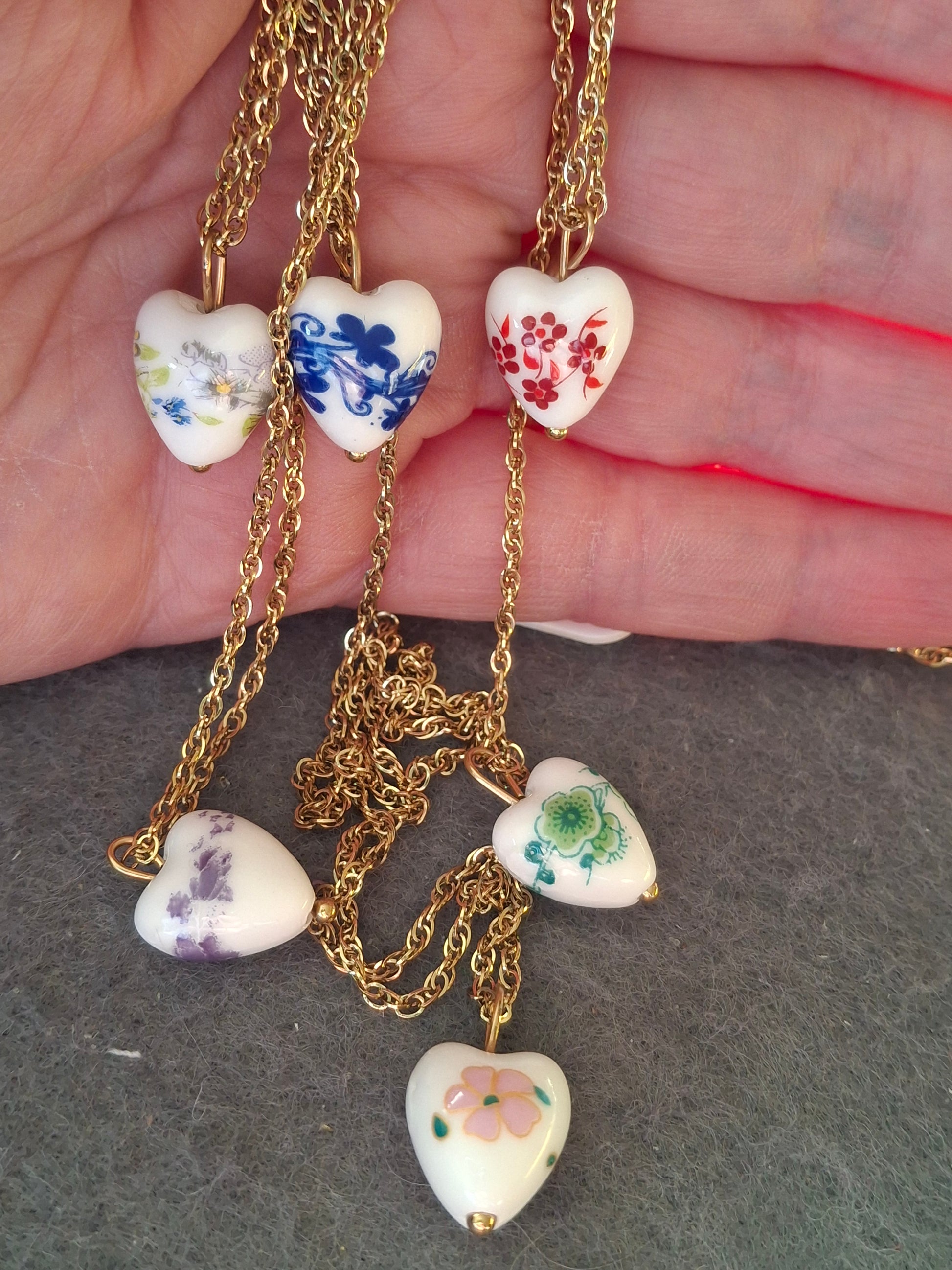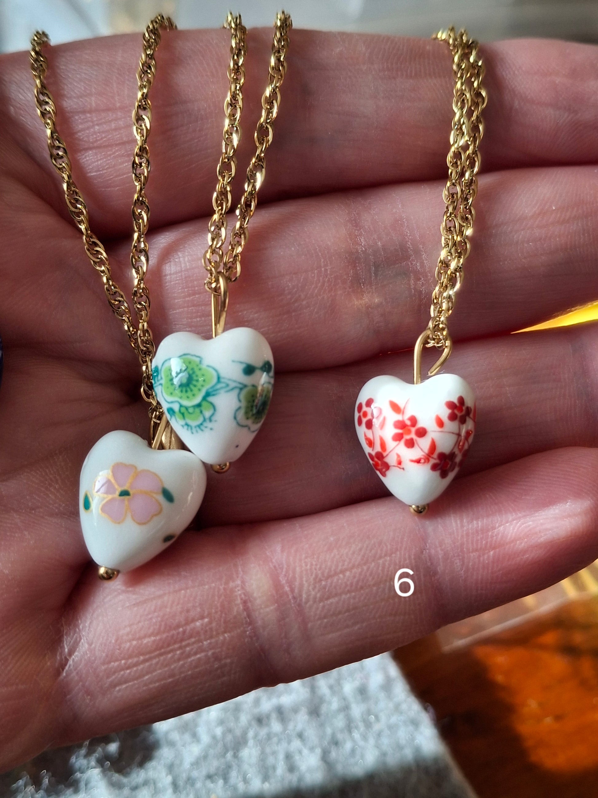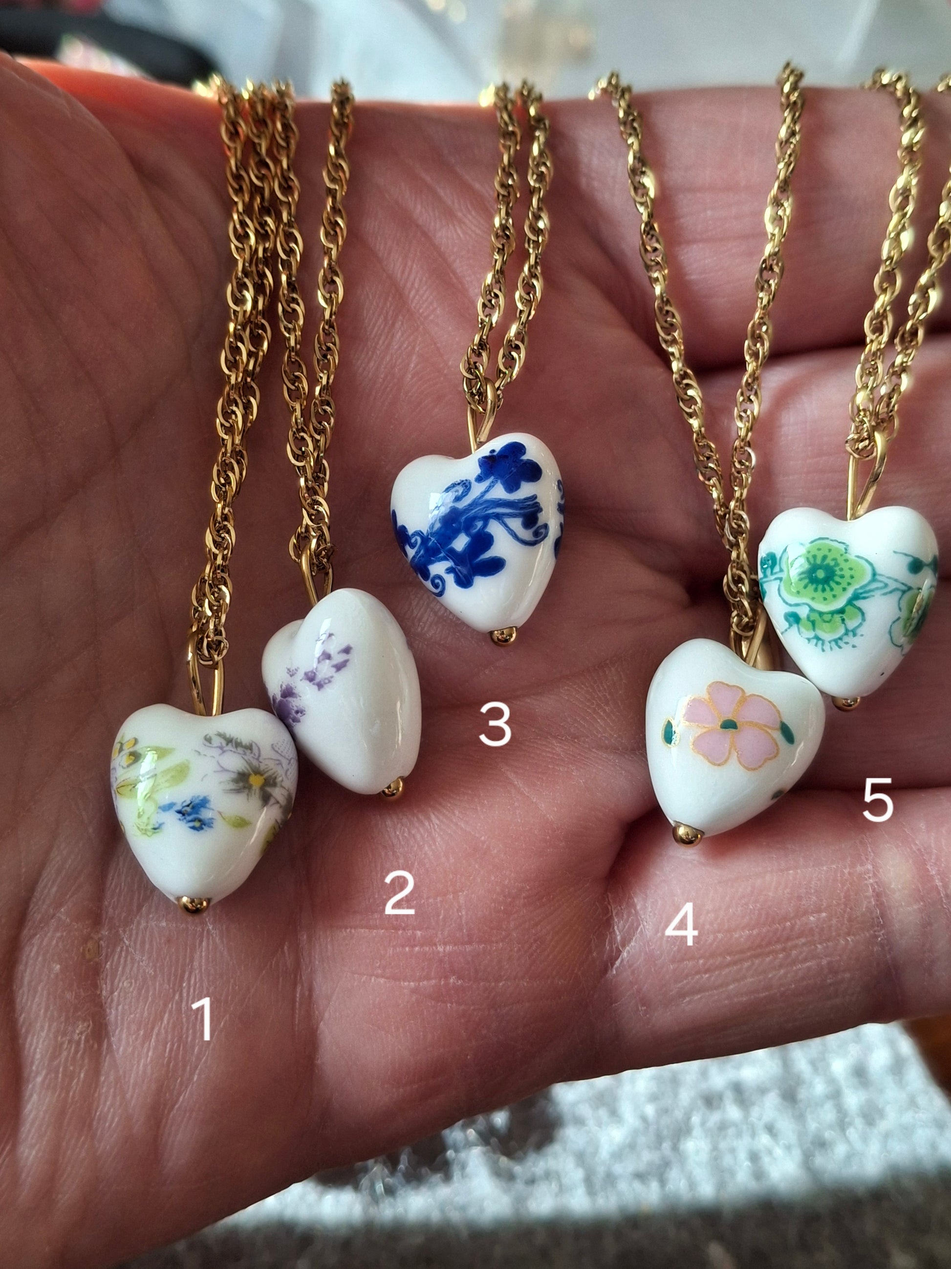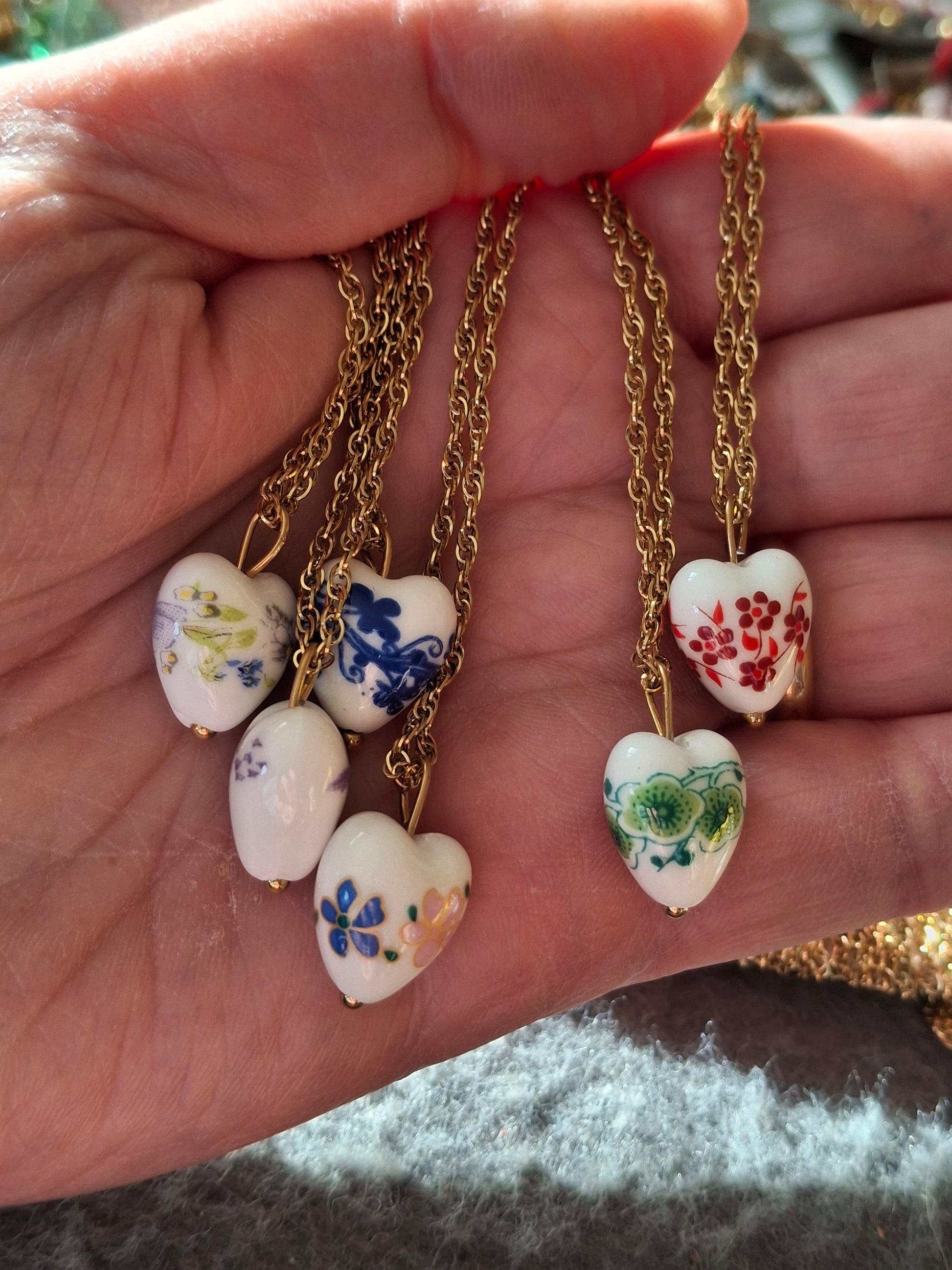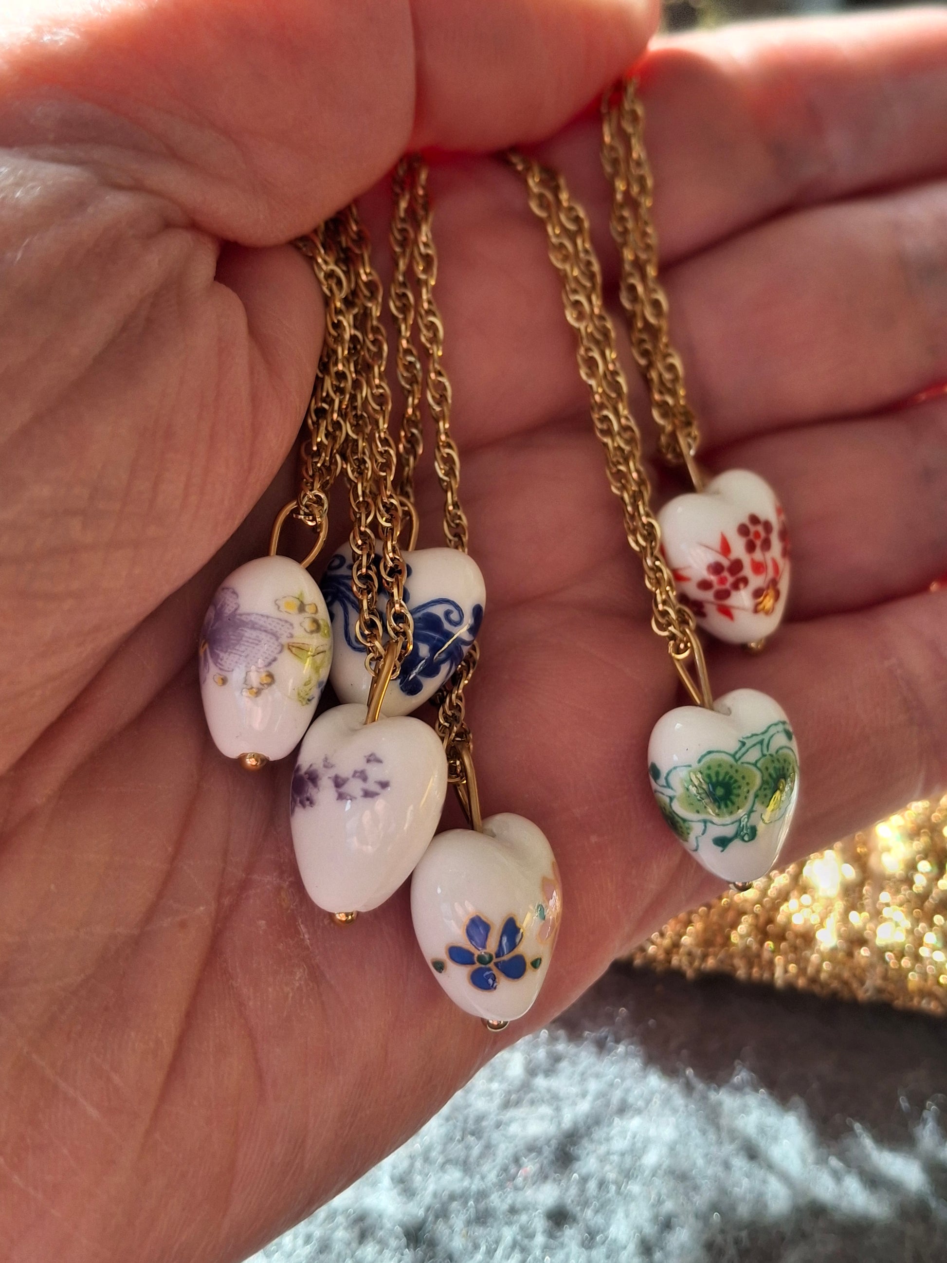 Halskette aus gedrehter Edelstahlkette (316) mit Porzellanherz