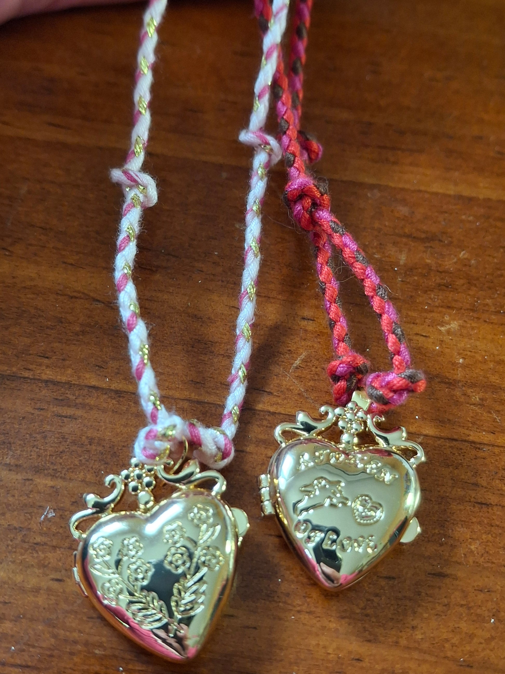 Handgefertigtes, verstellbares, geflochtenes Halsband mit Herzanhänger als Fotohalter.