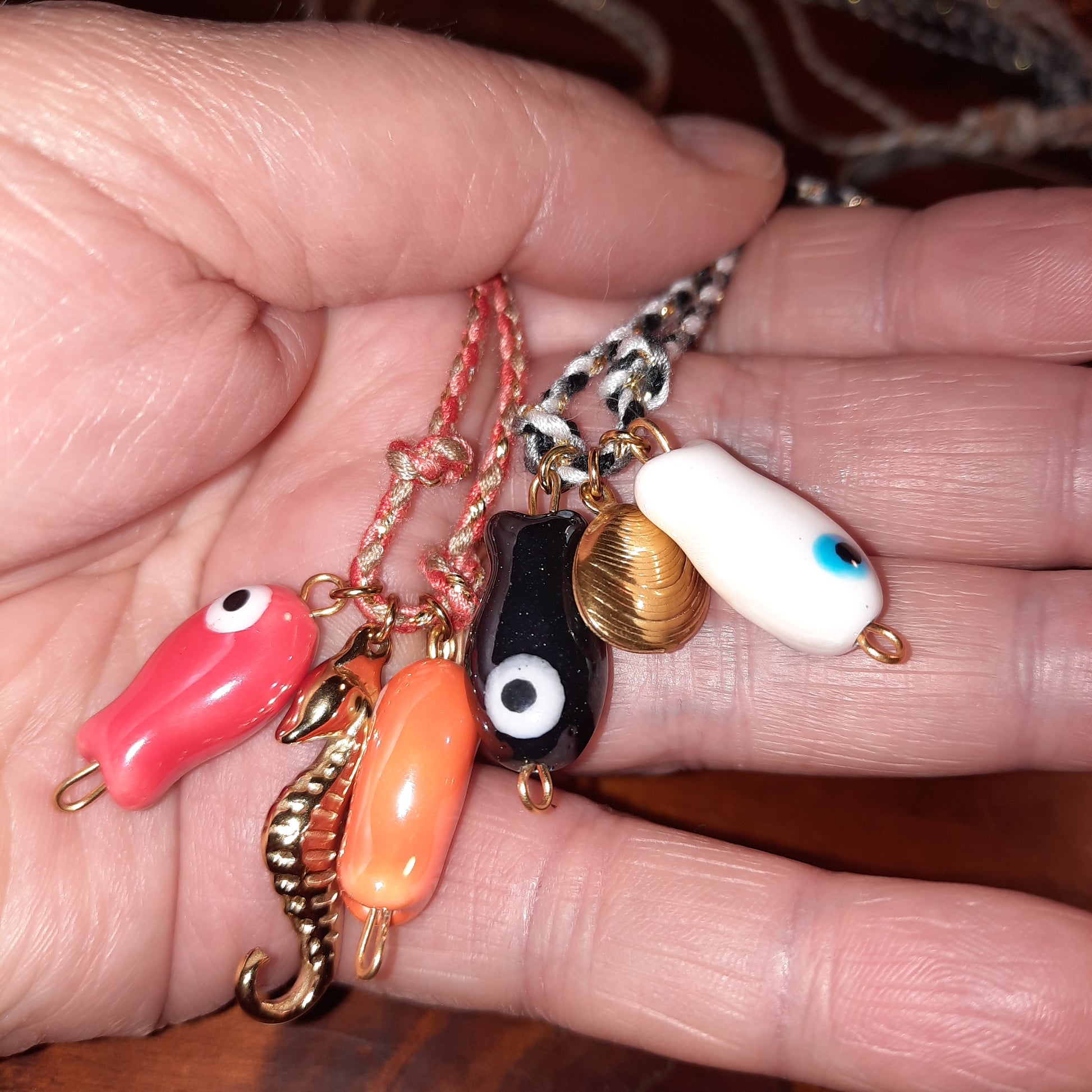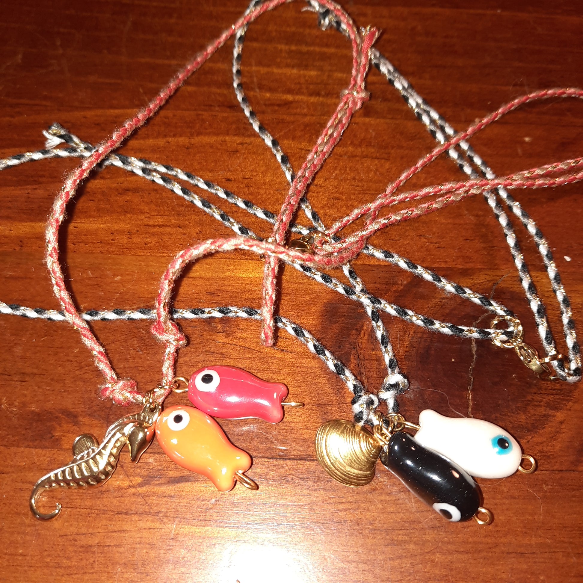 Beide Halsketten können recht kurz getragen werden, da sie mit Schlupfknoten verstellbar sind