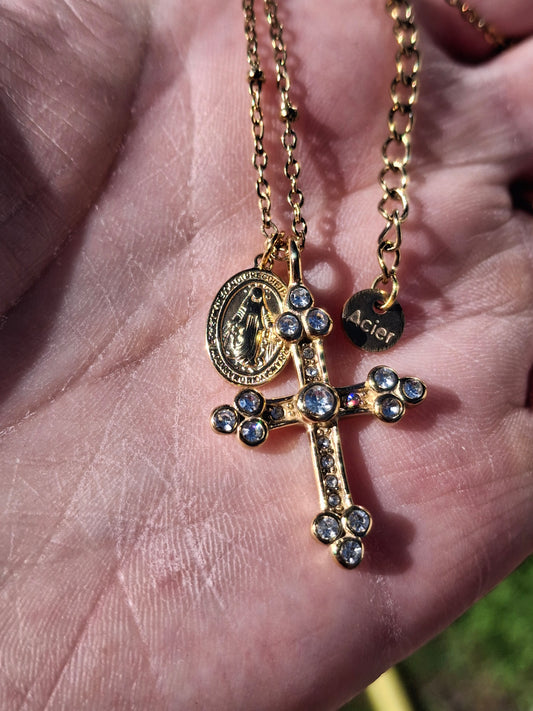 Stainless steel 316 necklace, cross and Madonna stainless steel 316