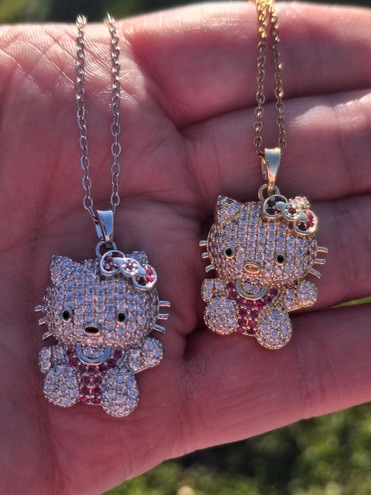 Stainless steel chain necklace and Hello Kitty pendant, set with zirconium, adjustable.