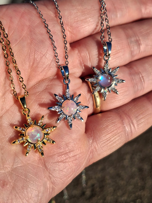 Stainless steel 316 chain necklace and 316 stainless steel sun pendant set with zirconium, adjustable.