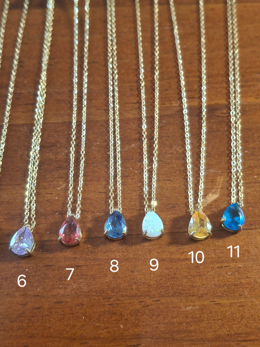 Adjustable stainless steel 316 chain necklace with birthstone crystal