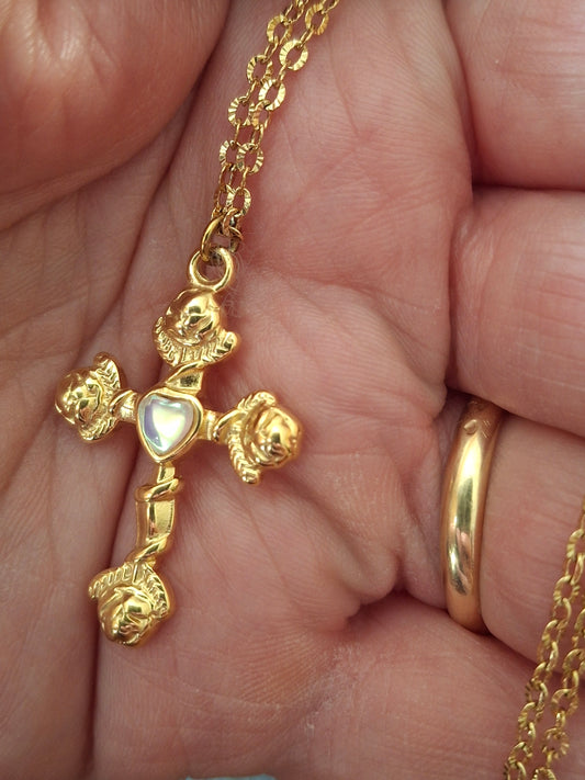 Gold chain necklace made of 316 stainless steel and polished 316 stainless steel cross.