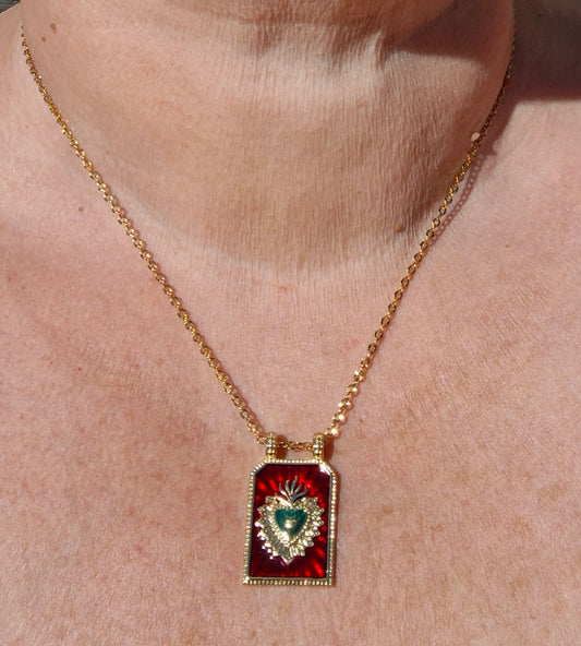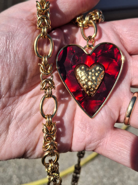 High-quality 316 stainless steel chain necklace with a large 316 stainless steel heart pendant and enamel.