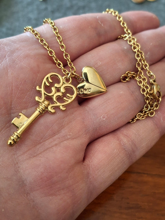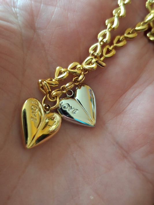 Gold-colored stainless steel 316 necklace chain with heart motif, polished 316 stainless steel heart pendant.