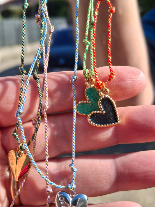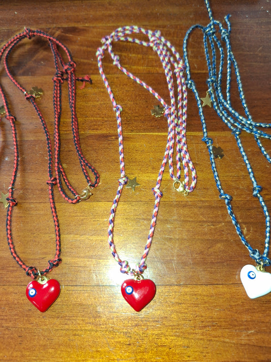 Adjustable braided cord necklace, handmade, with a 316 stainless steel and enamel heart pendant.