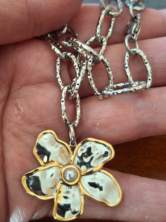 Very beautiful necklace, 316 stainless steel chain, 316 stainless steel flower pendant, adjustable.