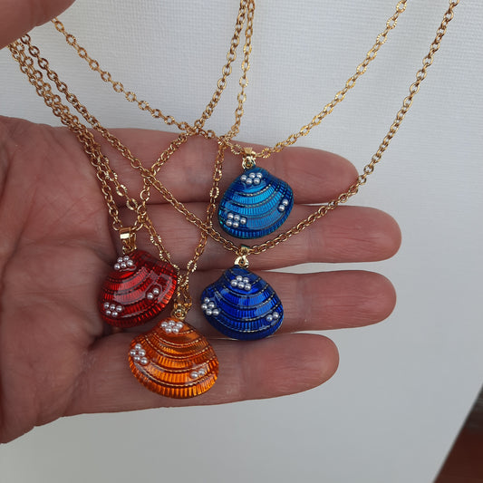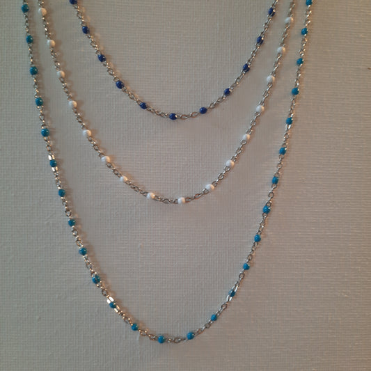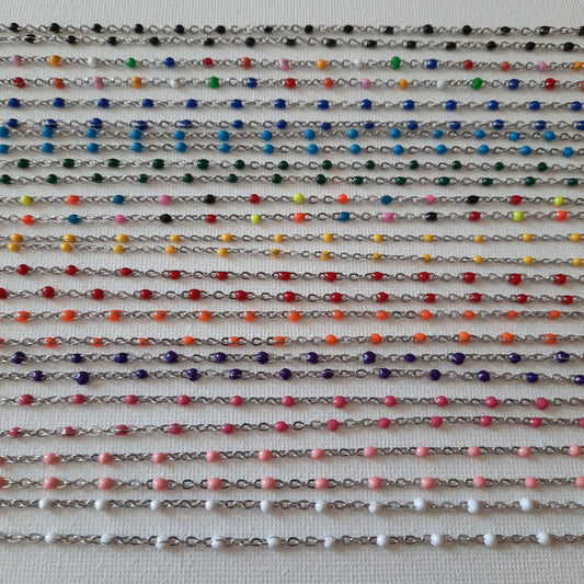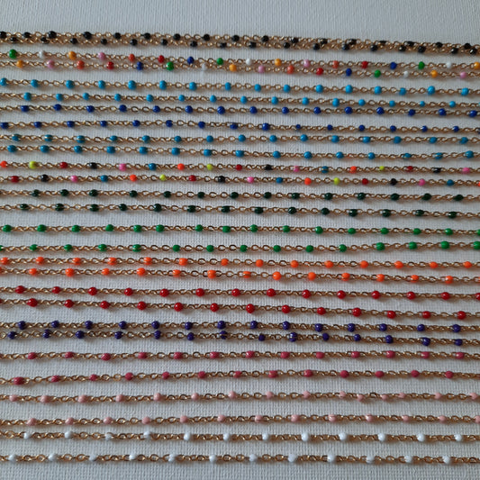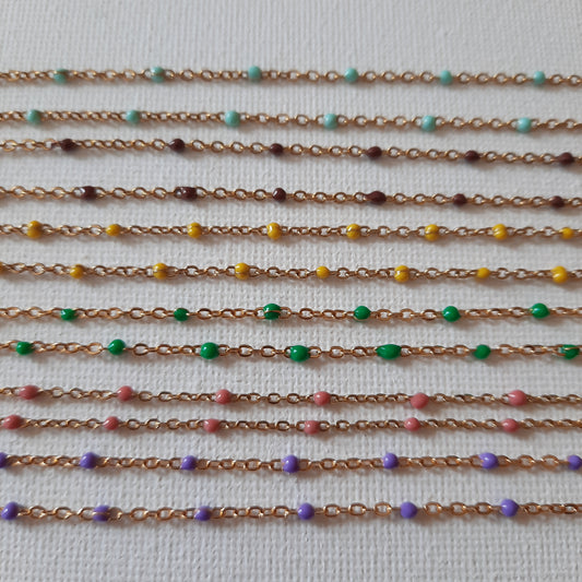 Stainless steel cable chain necklace and beads in colored enamel handemade to measure