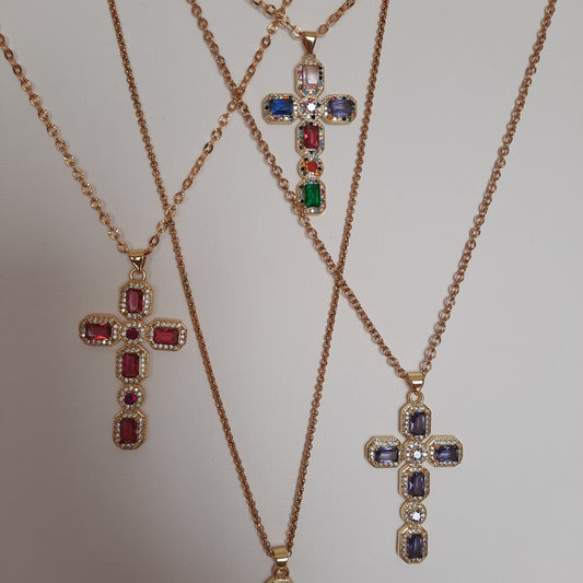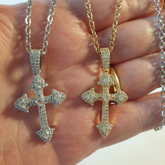Superior quality stainless steel chain necklace, 18K gold plated cross pendant, set with AAA Austrian zirconium