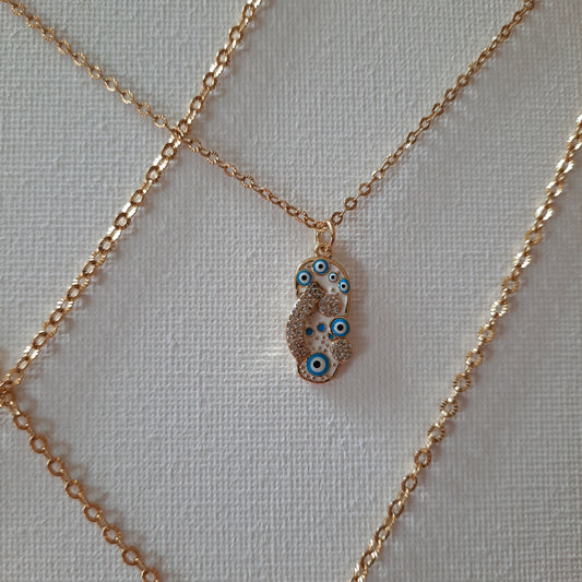 Striated 316 stainless steel gold chain necklace and 18K gold-plated thong pendant set with zirconium and evil eye email