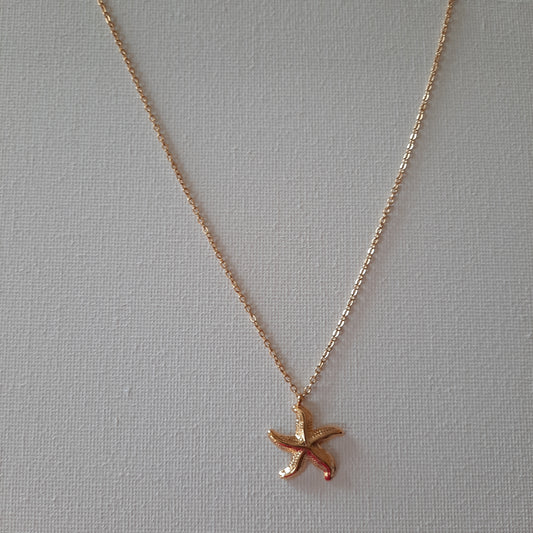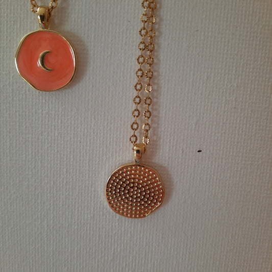 Striated golden chain necklace stainless steel 316, golden brass pendant moon or star colored email