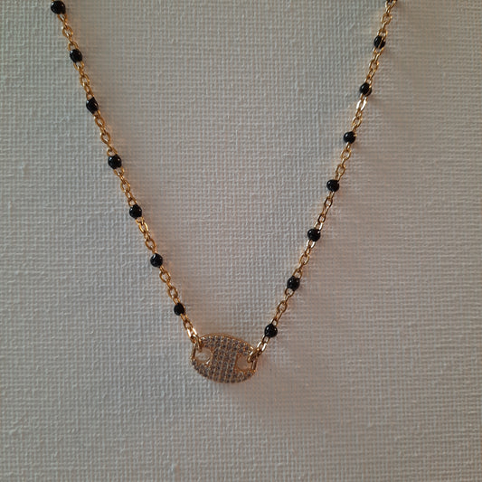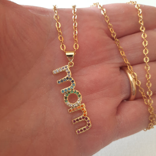 Gold chain necklace with striated stainless steel 316, mom pendant in 18K gold plated set with AAA zirconium austrian handemade
