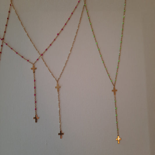 Rosary necklace with stainless steel gold chain and adjustable stainless steel enamel beads