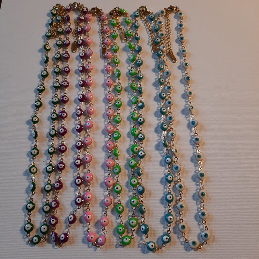 Stainless steel evil eye bead chain necklace, Turkish eye, adjustable adjustable