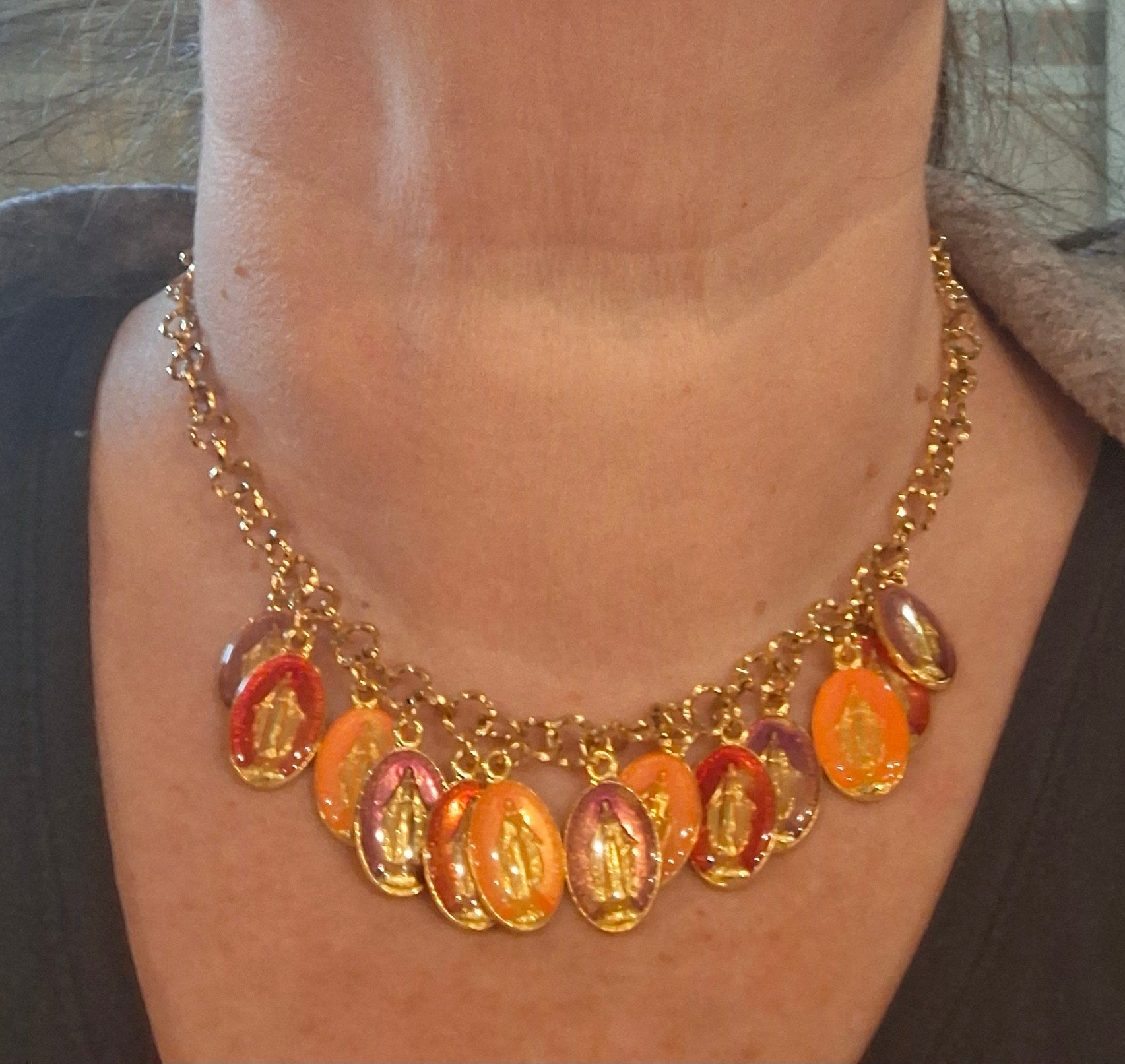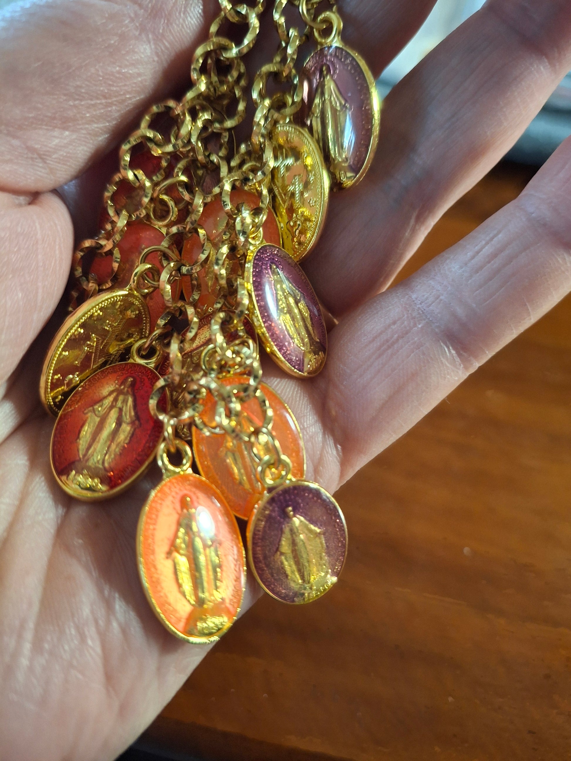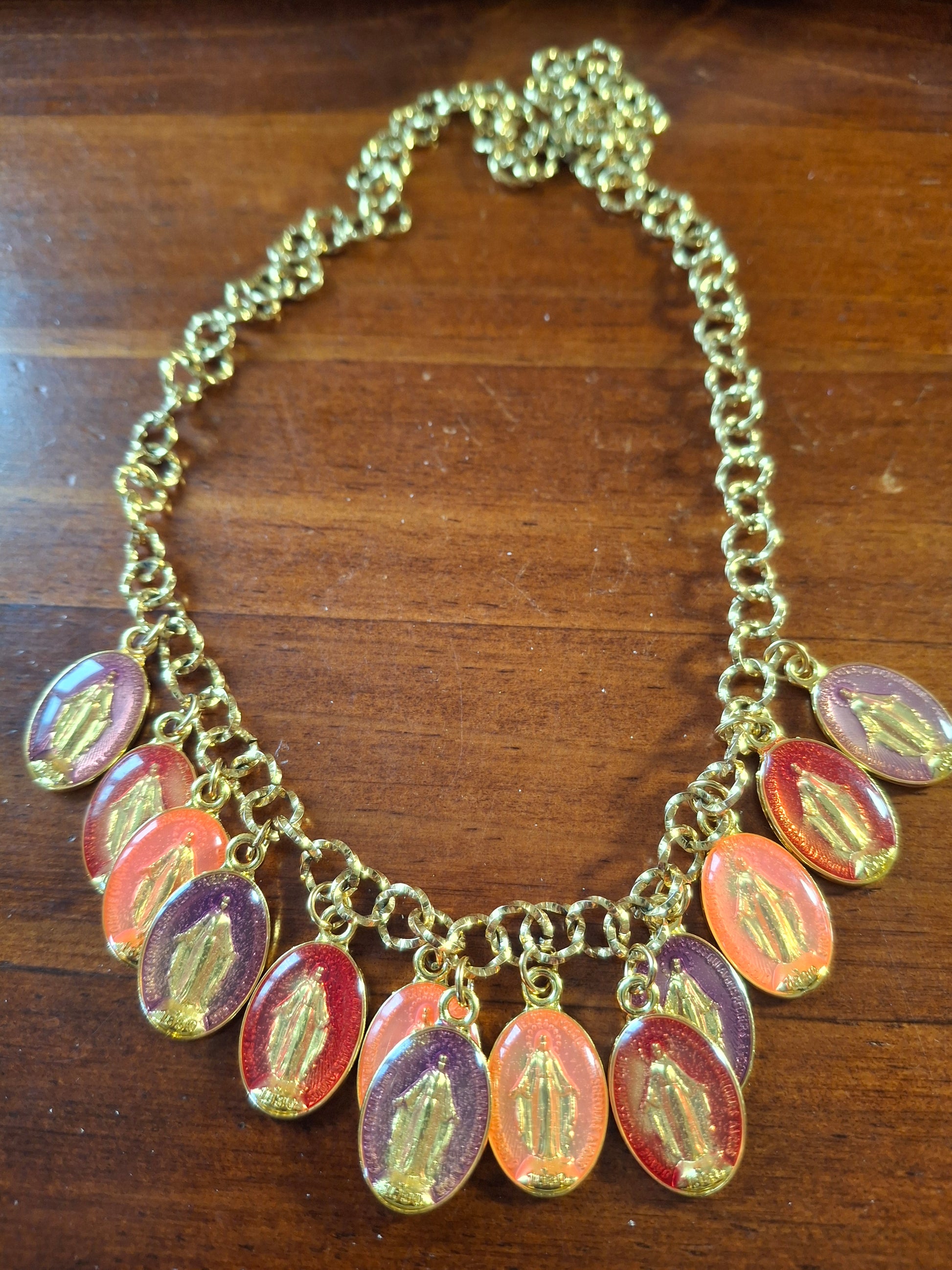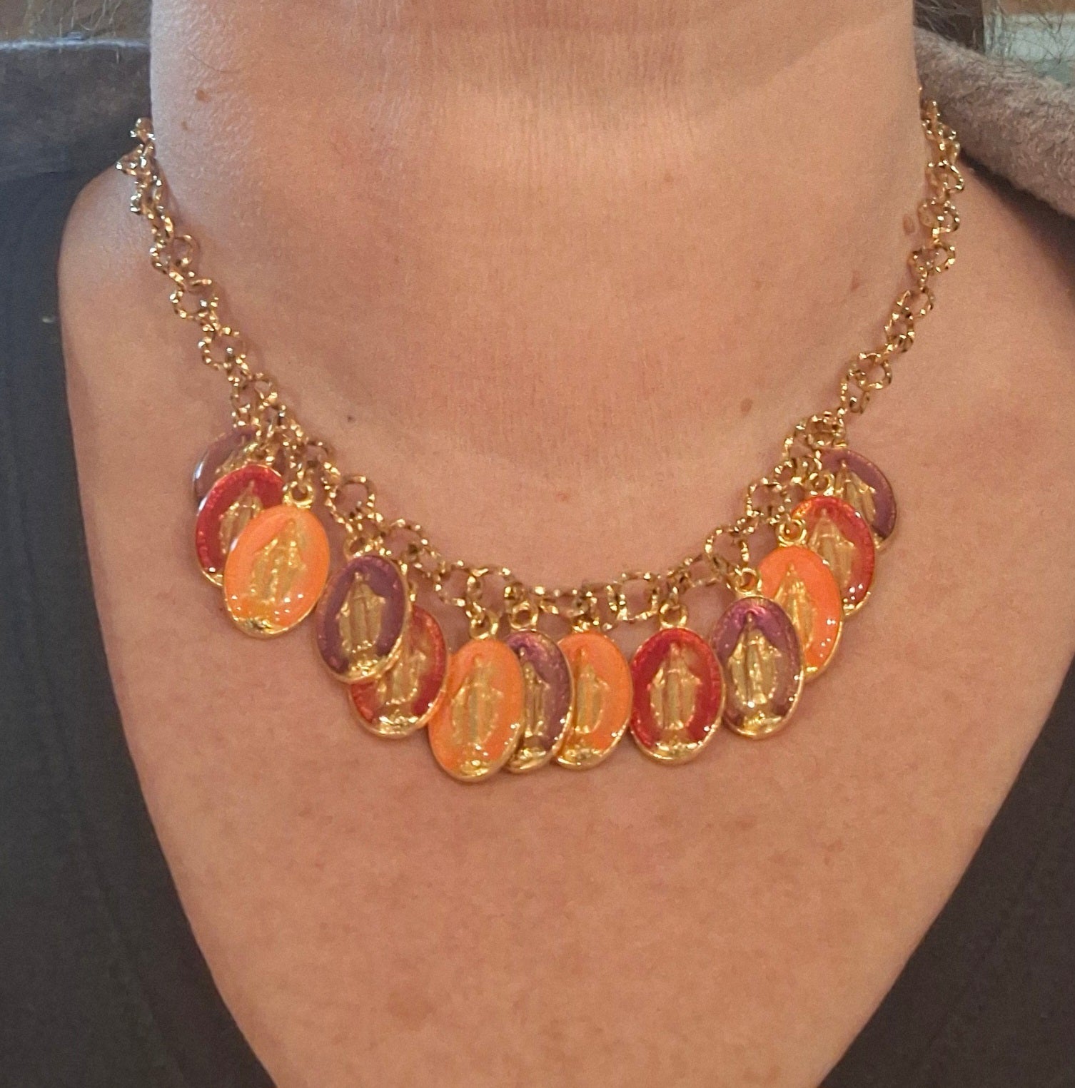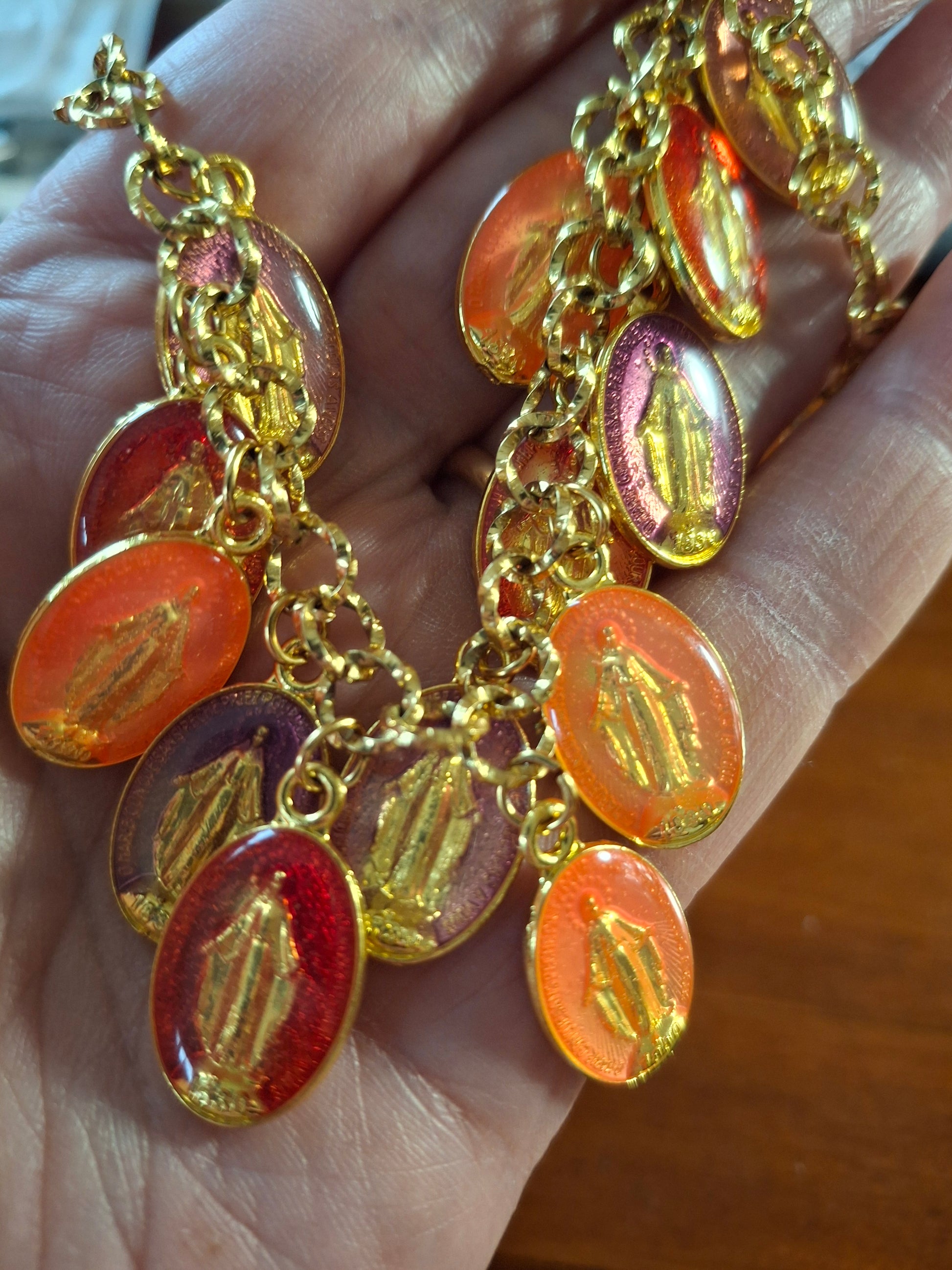 Madonna medals in copper and enamel, medals gilded with fine gold
