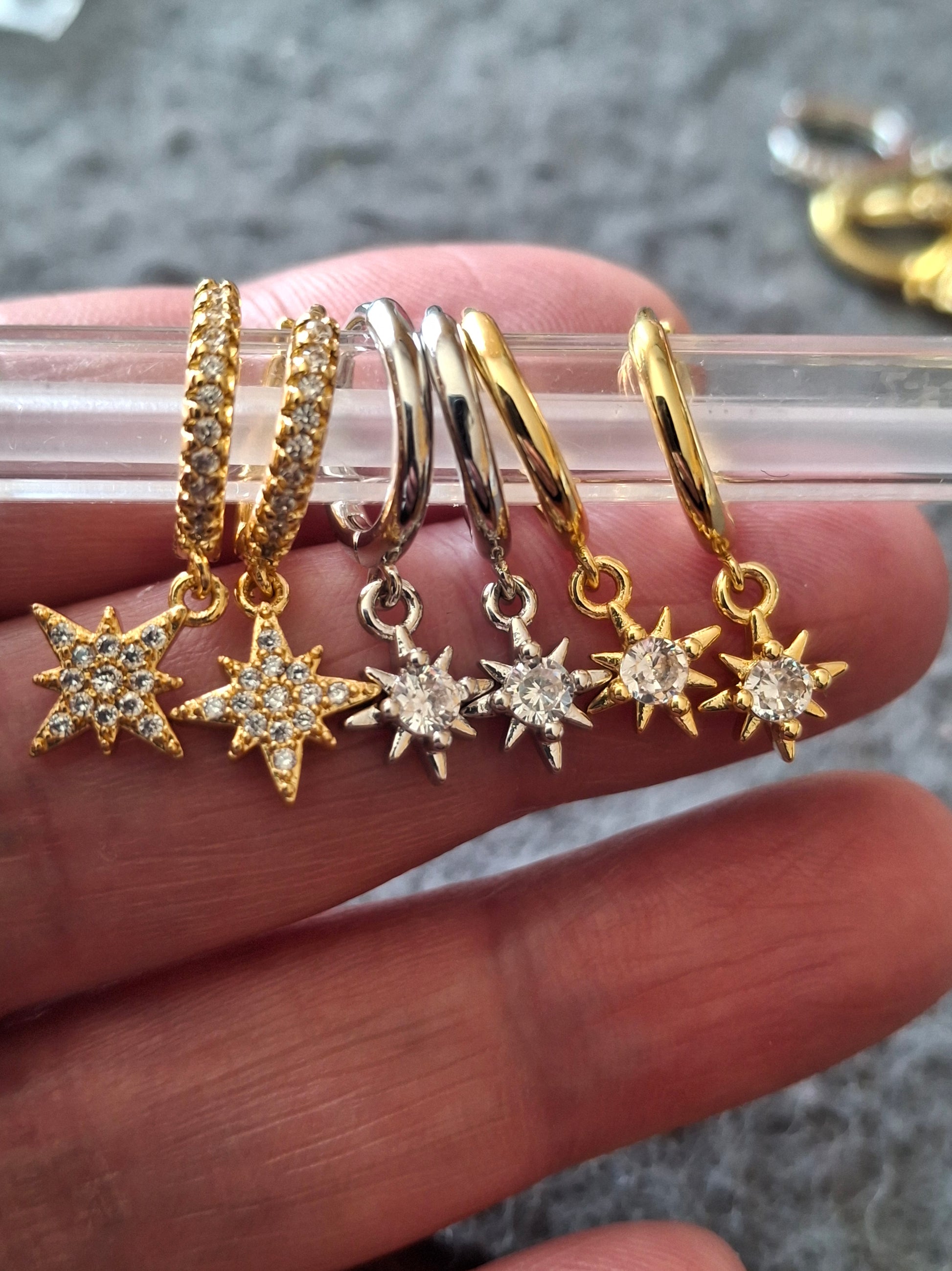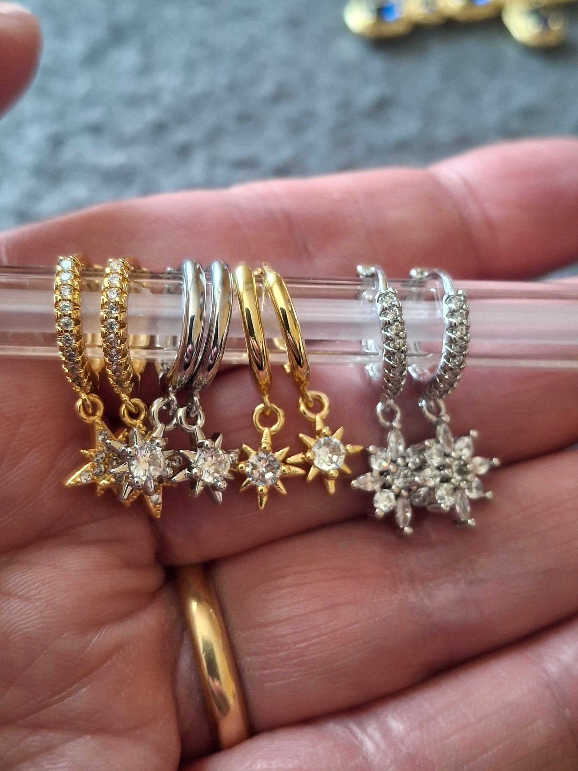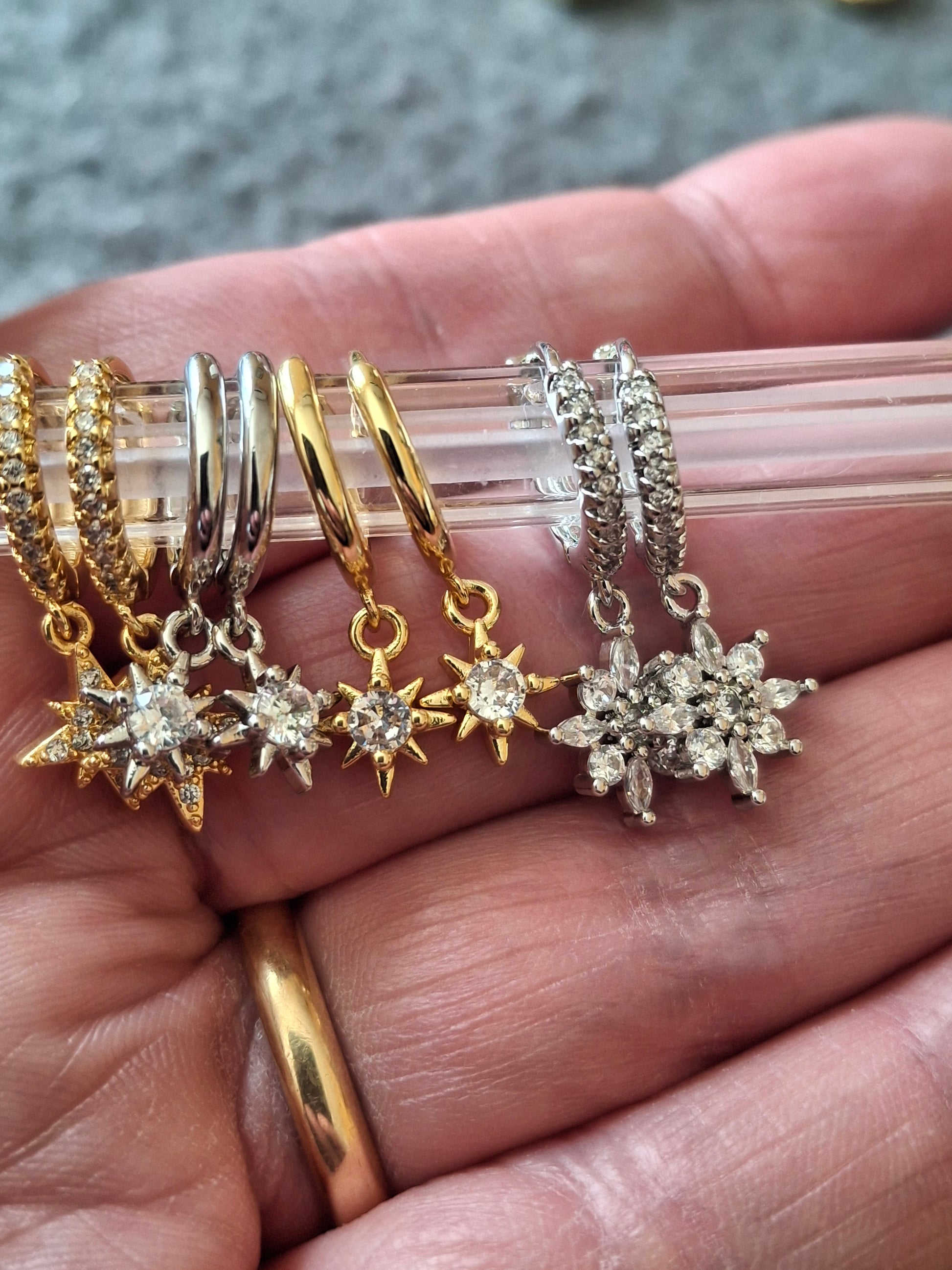 Star or flower pendant, 316 stainless steel, zirconium-set, nickel, cadmium, and lead-free
