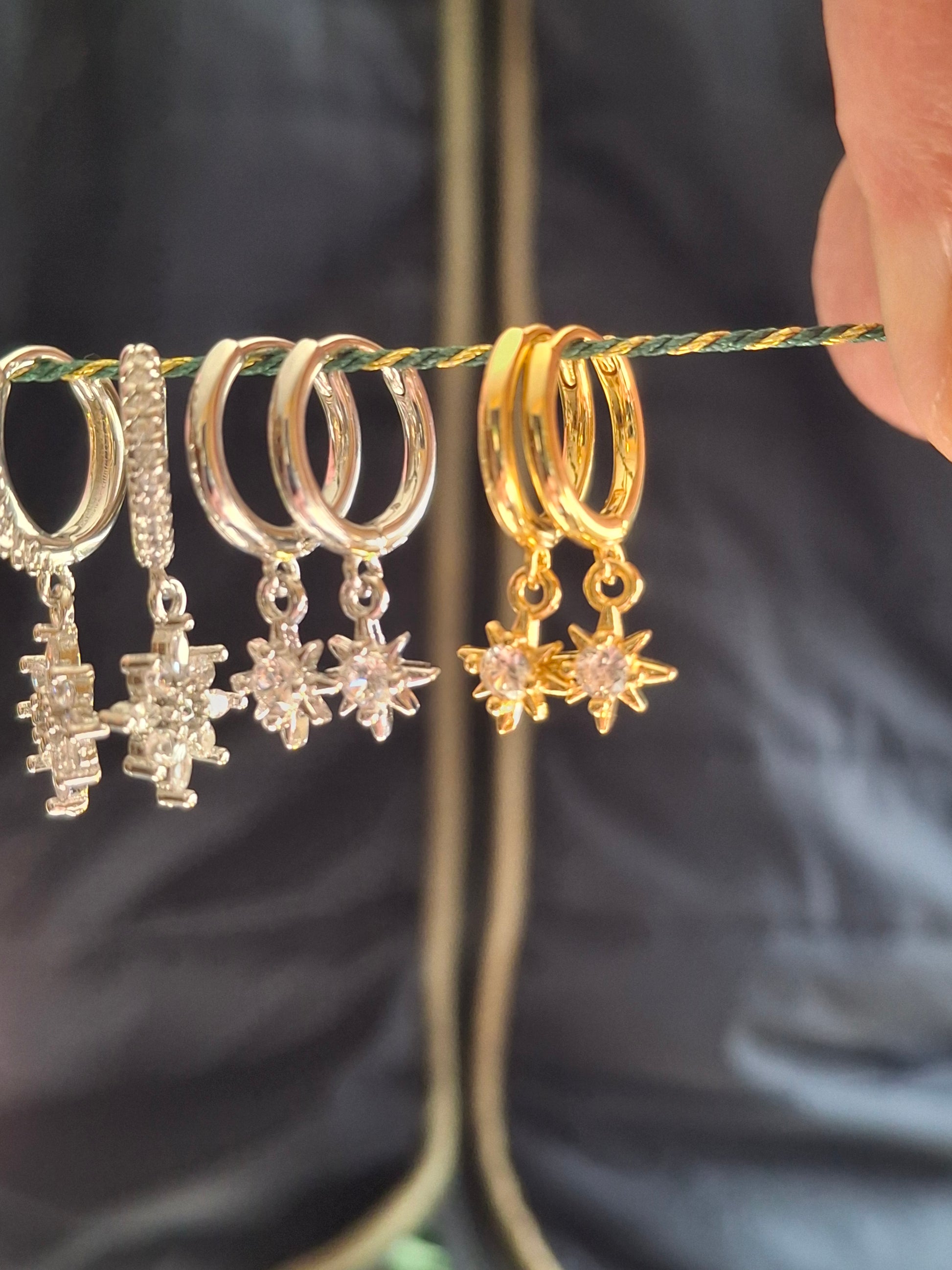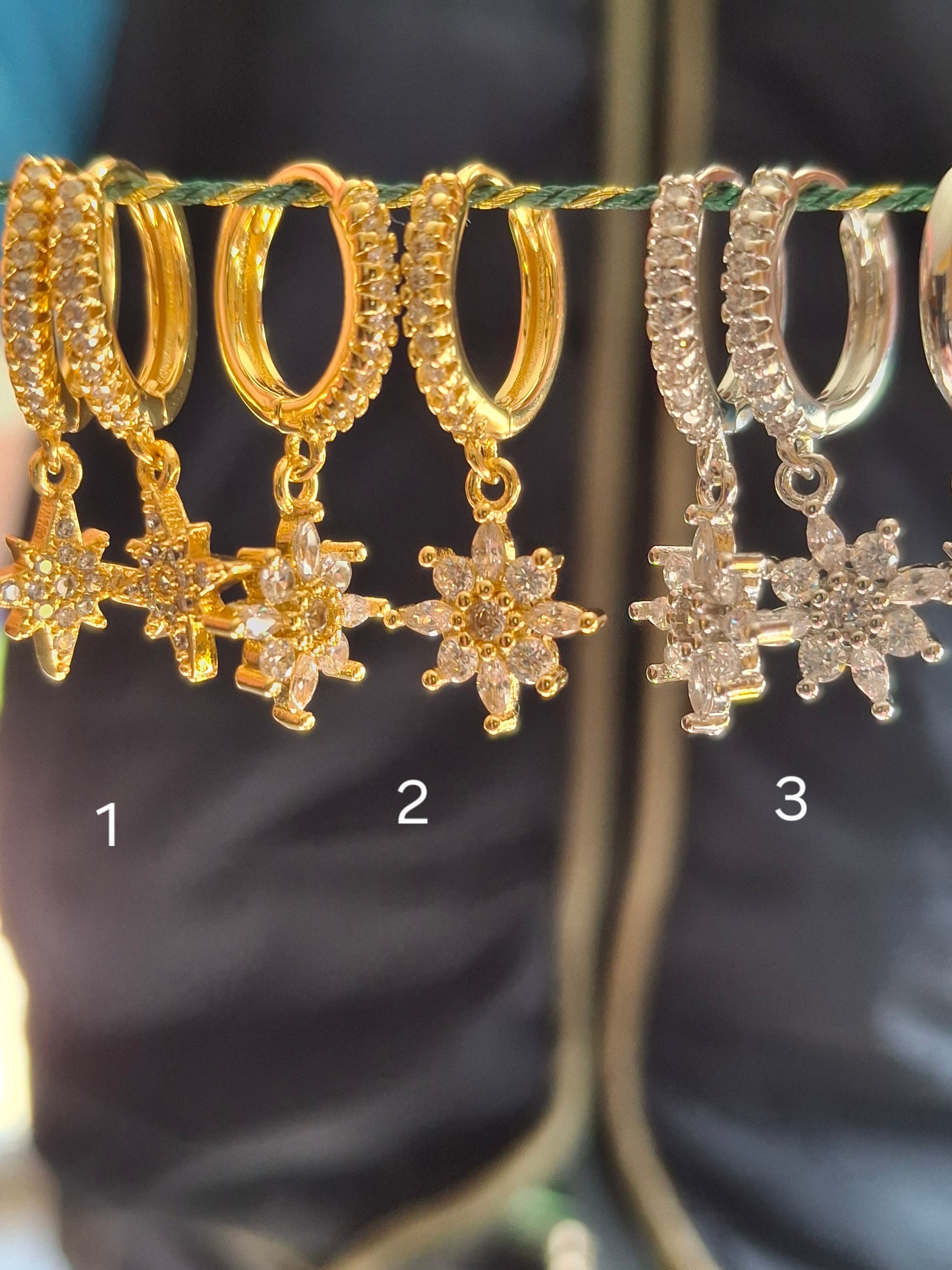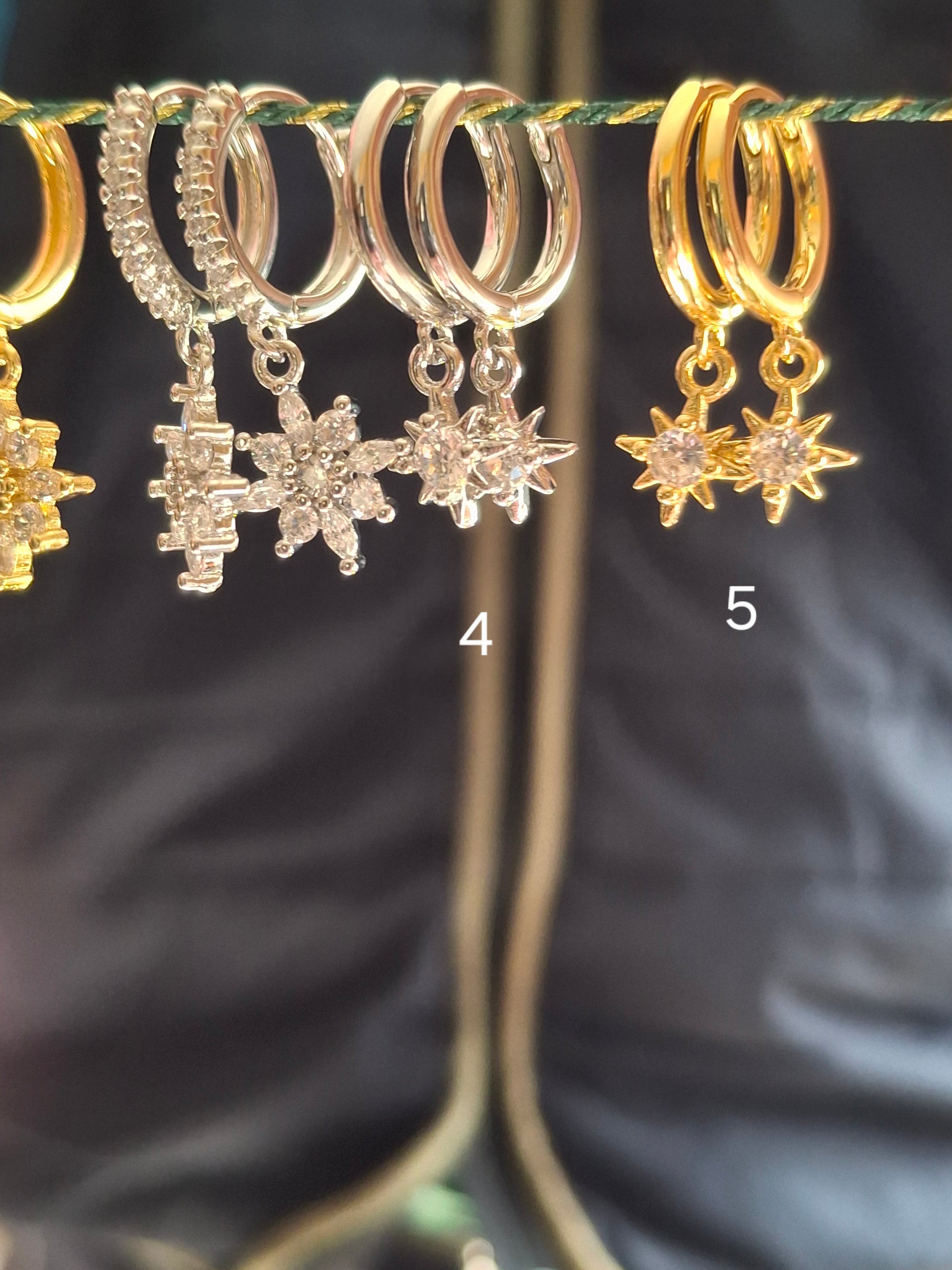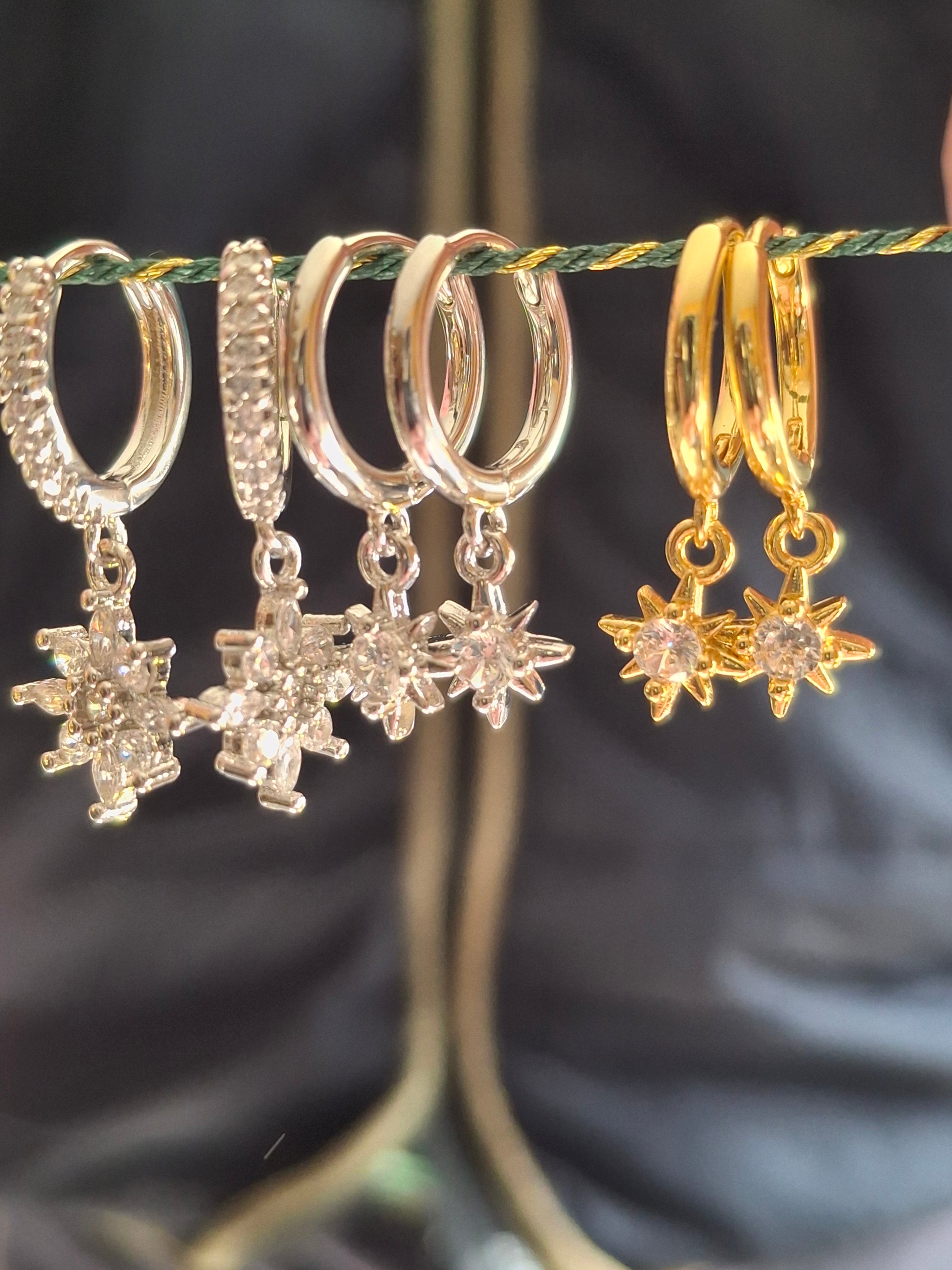 Star or flower pendant, 316 stainless steel, zirconium-set, nickel, cadmium, and lead-free