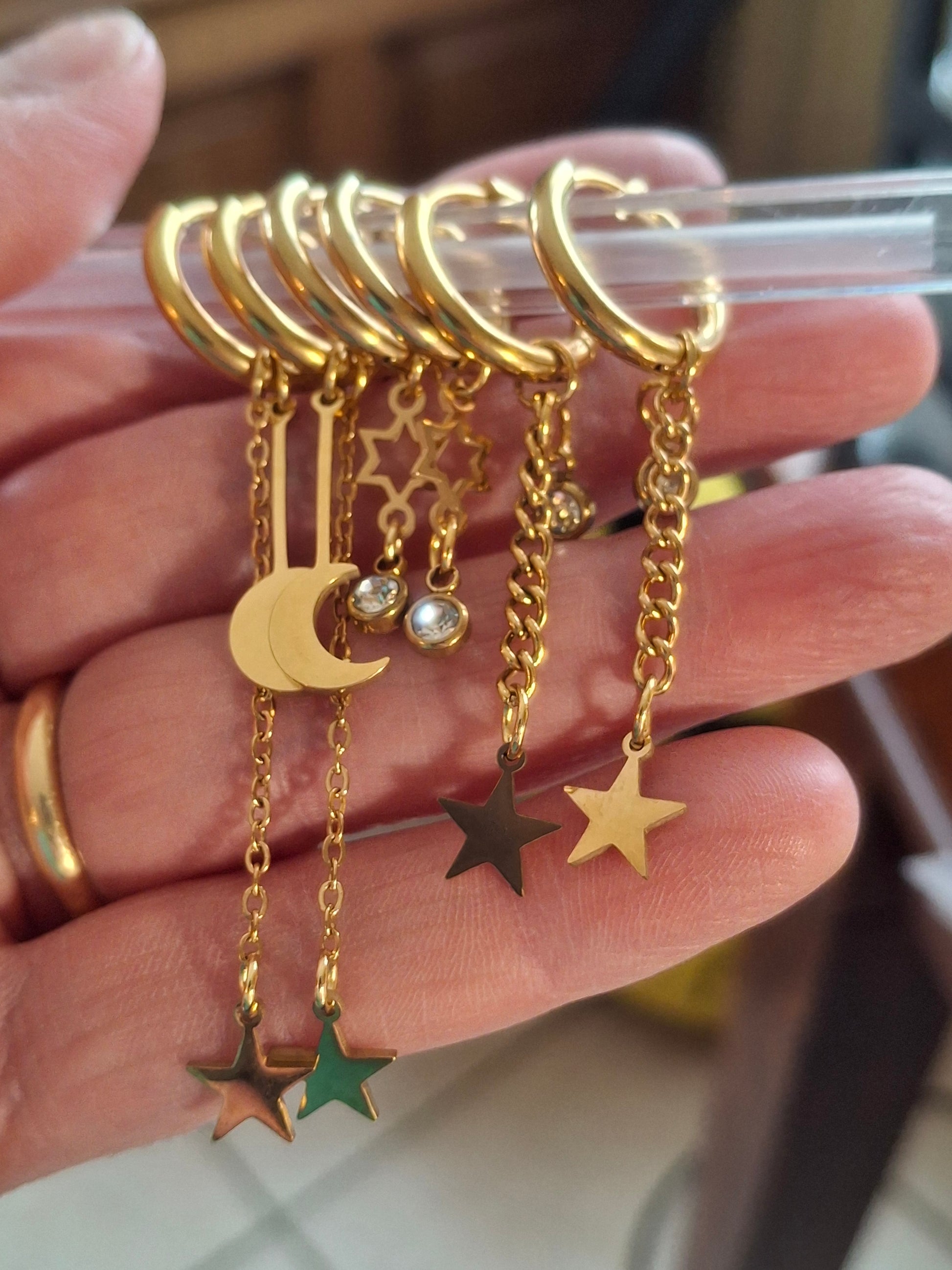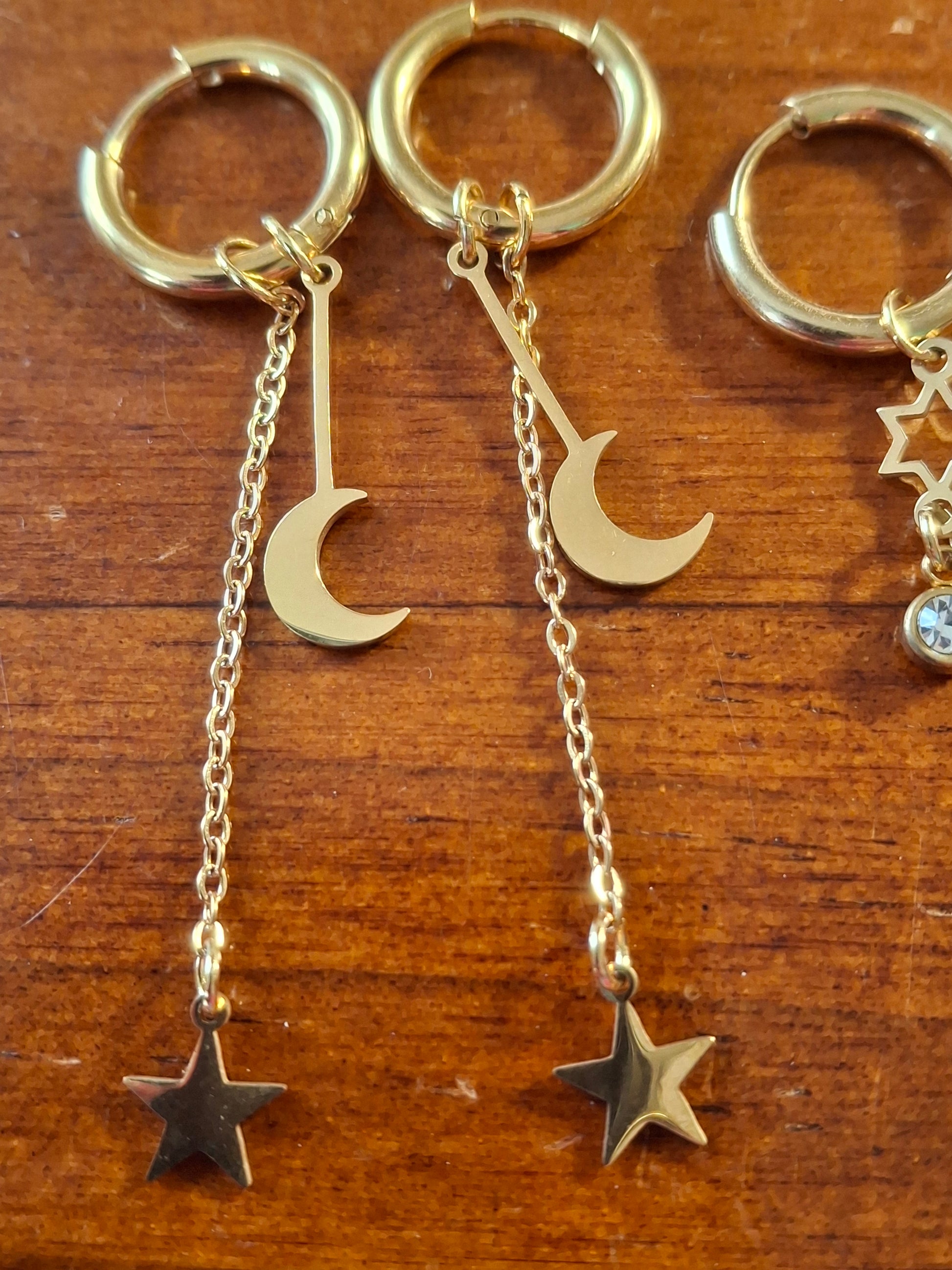 316 stainless steel pendant with moon, star, and zirconium, as well as chains and rings