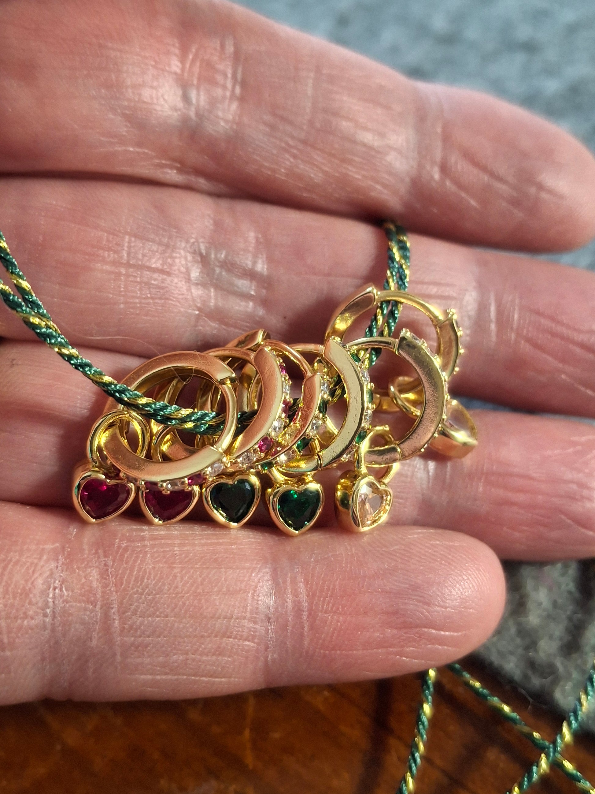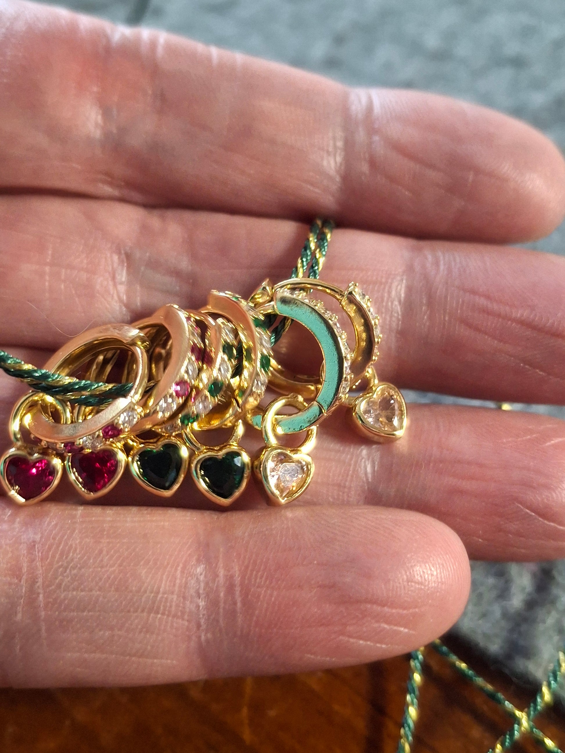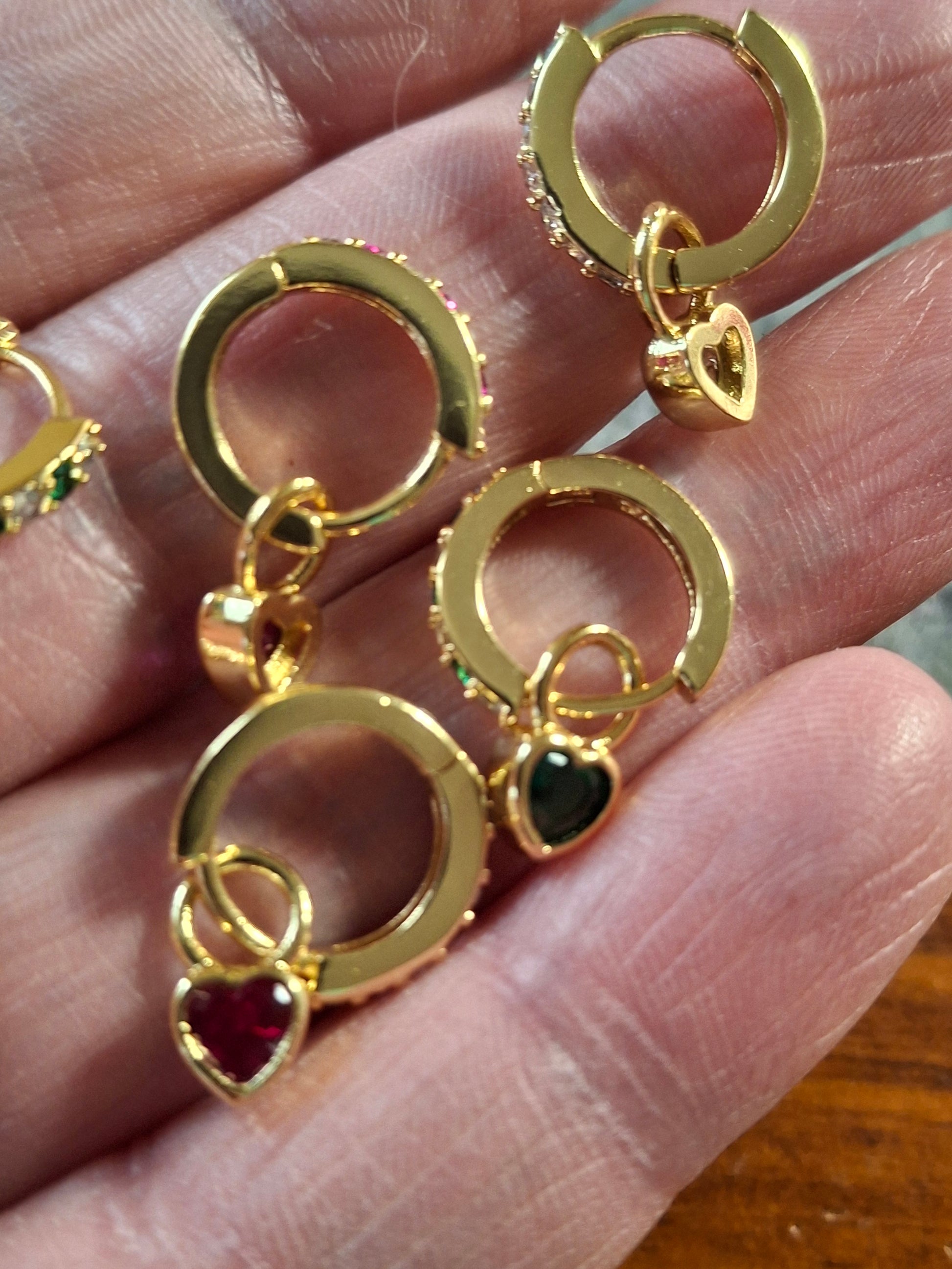 Single earrings, 316 stainless steel huggies and heart pendant with zirconia