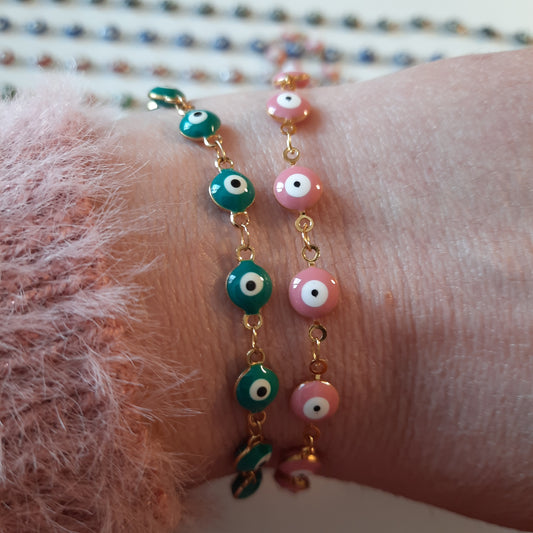 Bracelet chaîne acier inoxydable evil eye, œil de Turquie, œil protecteur sur mesure