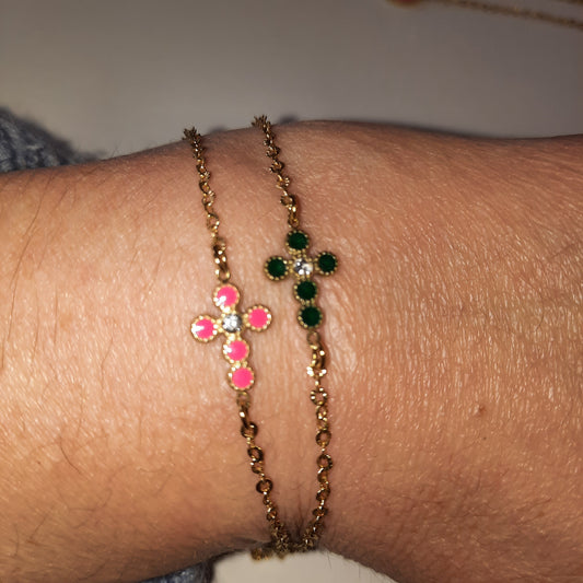 Bracelet chaîne acier inoxydable stainless steel 316 et croix stainless steel 316 plaqué or sur mesure