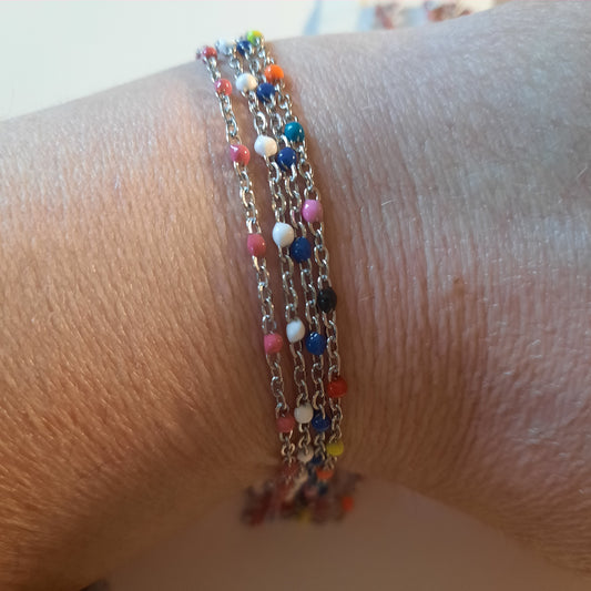 Bracelet chaîne acier inoxydable stainless steel et perles en email coloré sur mesure handemade
