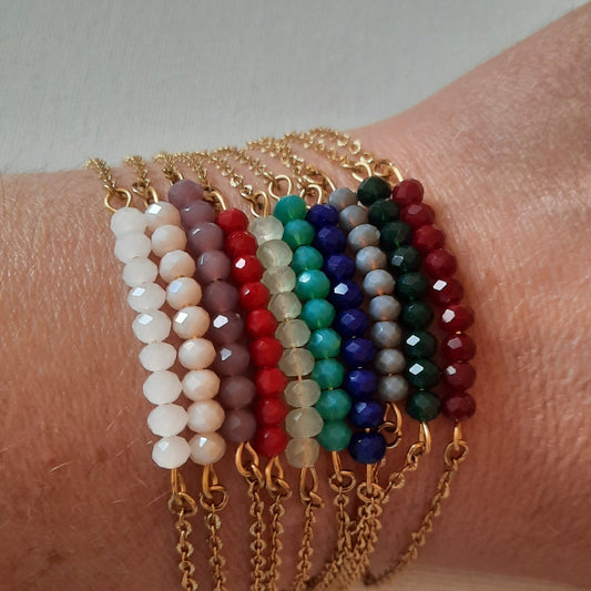 Bracelet chaîne acier inoxydable striée stainless steel 316 et perles en cristal à facettes sur mesure handmade
