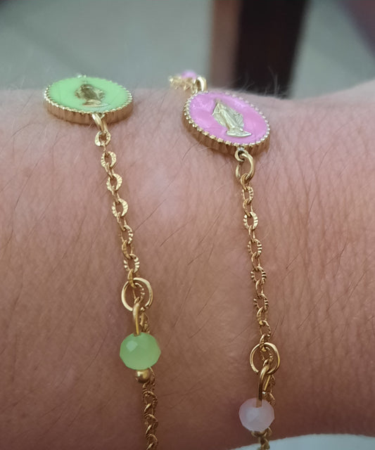 Bracelet chaîne acier inoxydable stainless steel 316 et madone stainless steel 316 et email coloré