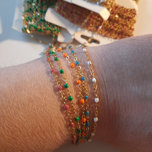 Bracelet chaîne acier inoxydable stainless steel et perles en email coloré sur mesure handemade