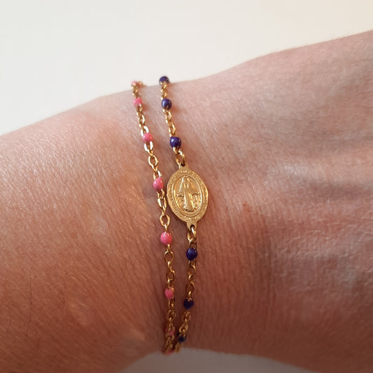Bracelet stainless steel et perles en email coloré madone vierge miraculeuse stainless steel sur mesure handemade