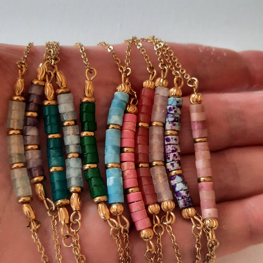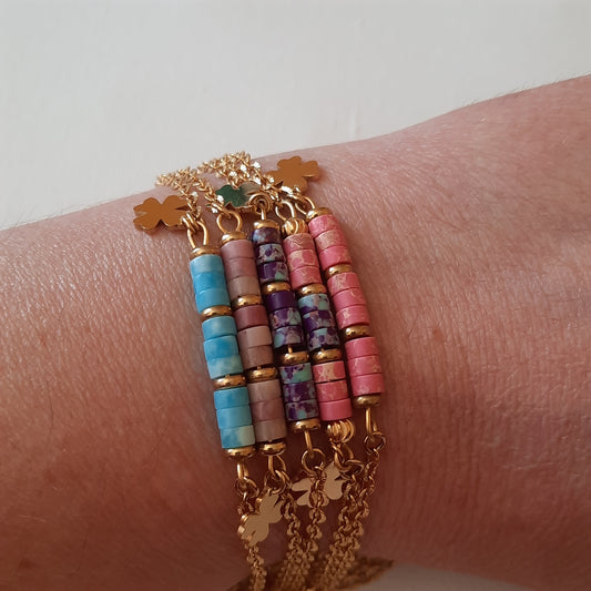 Bracelet stainless steel 316 et perles heishi en pierre sur mesure handmade