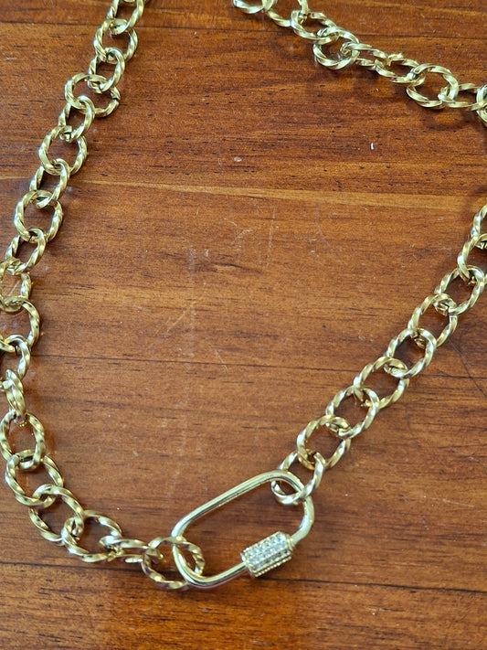 Choker chaîne dorée acier inoxydable stainless steel et fermoir grand mousqueton plaqué or 18K sertie zirconium