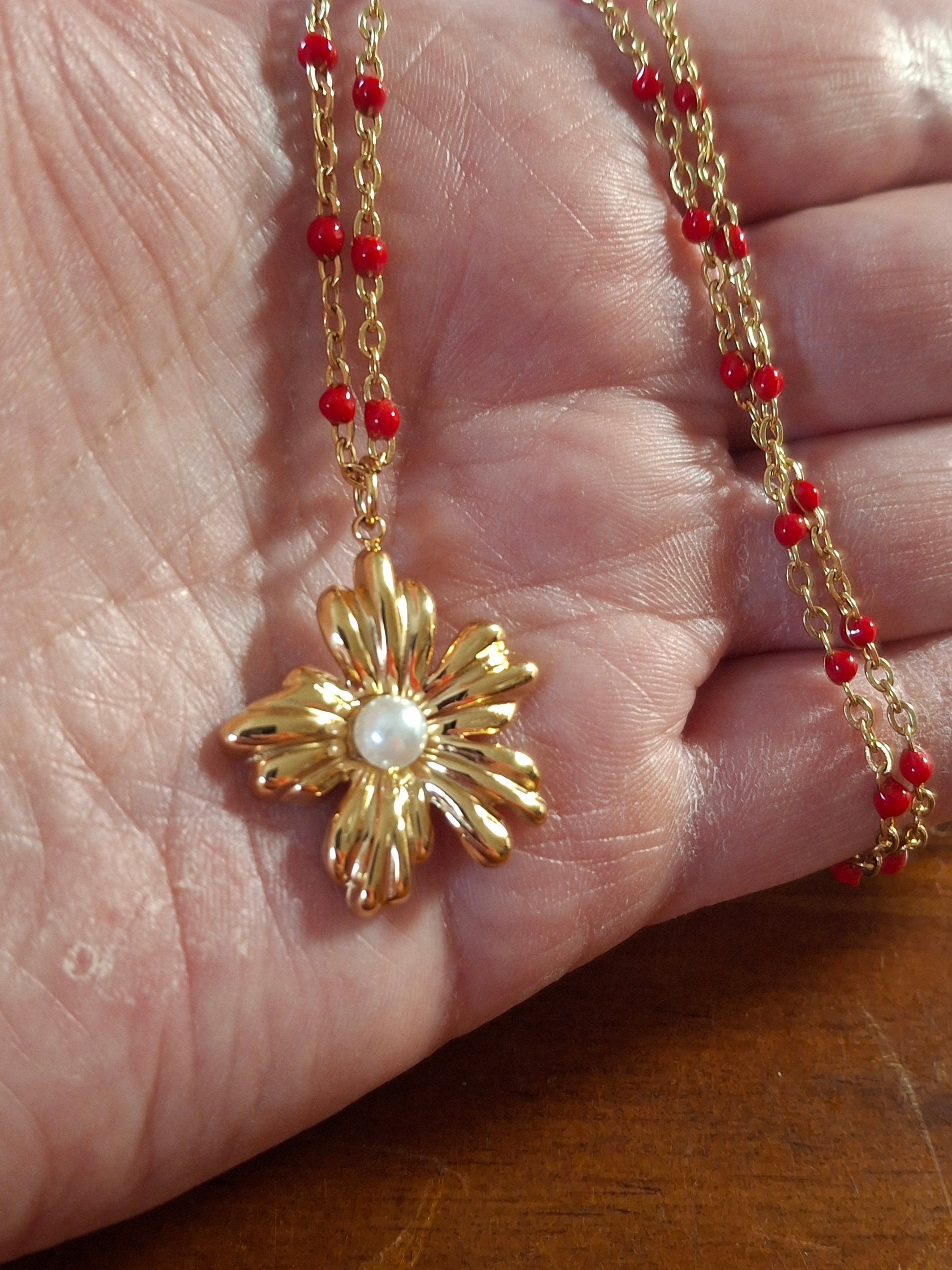 Collier chaîne dorée acier inoxydable et fleur stainless steel